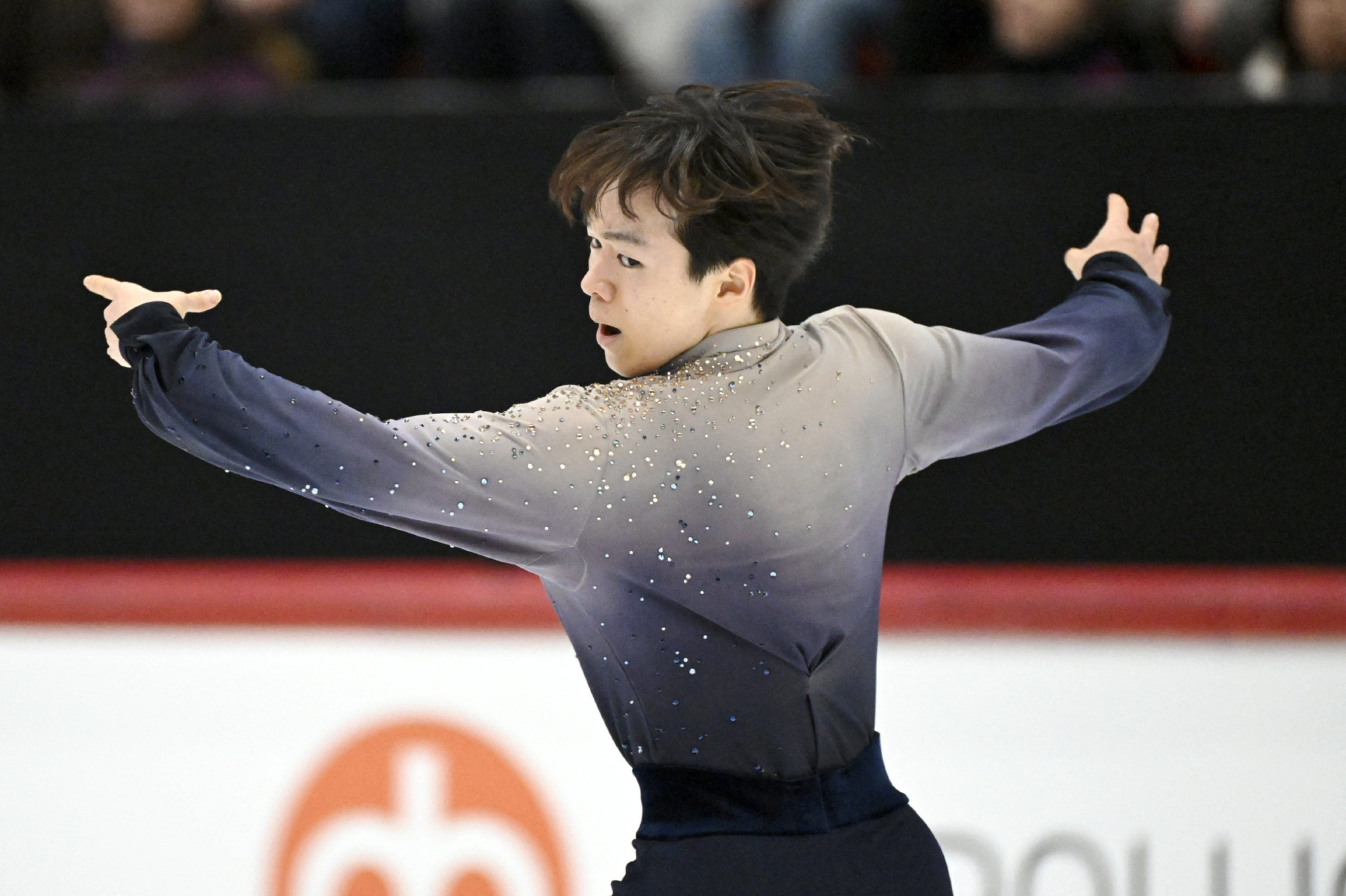 フィギュアスケートのグランプリ(GP)シリーズ第6戦。男子フリーで鍵山優真が182.29点で1位となり、合計270.45点でショートプログラム3位から逆転優勝した=22日、ヘルシンキ【AFP時事】