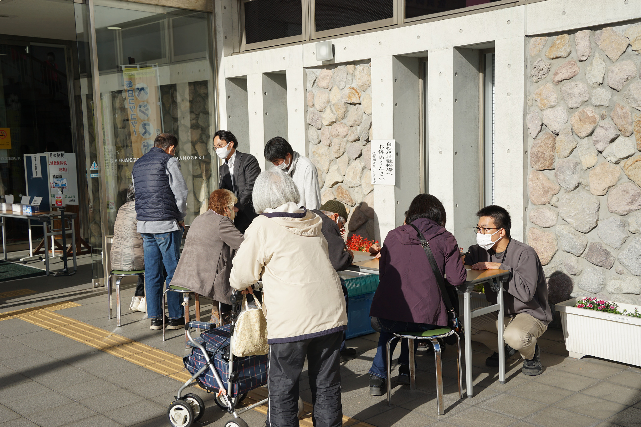 大分市佐賀関で約170棟を焼いた大規模火災で、市は24日、被災者の生活再建に向けた支援策などについて説明会を開いた。写真は受け付けをする被災者ら。