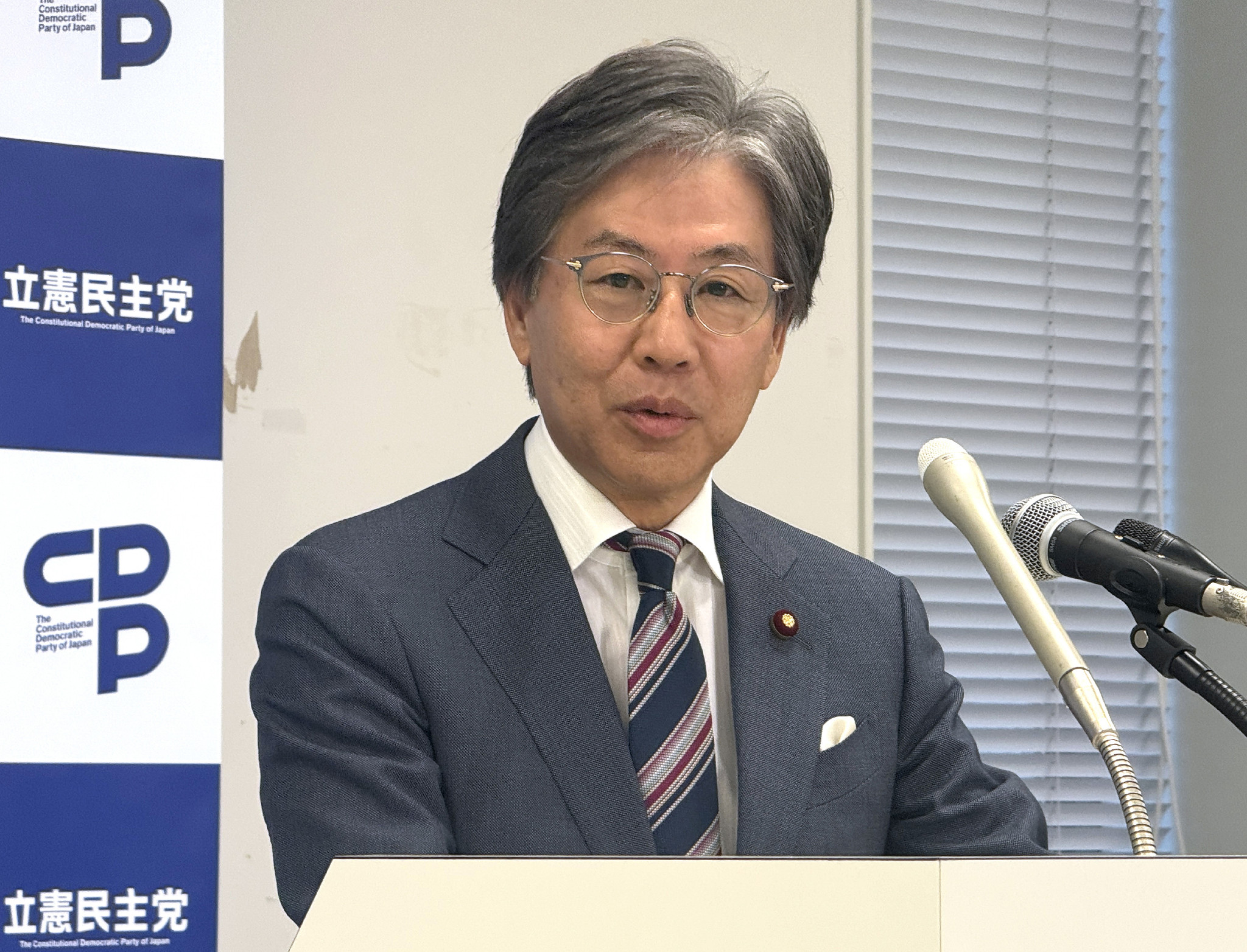 記者会見する立憲民主党の安住淳幹事長=25日、国会内