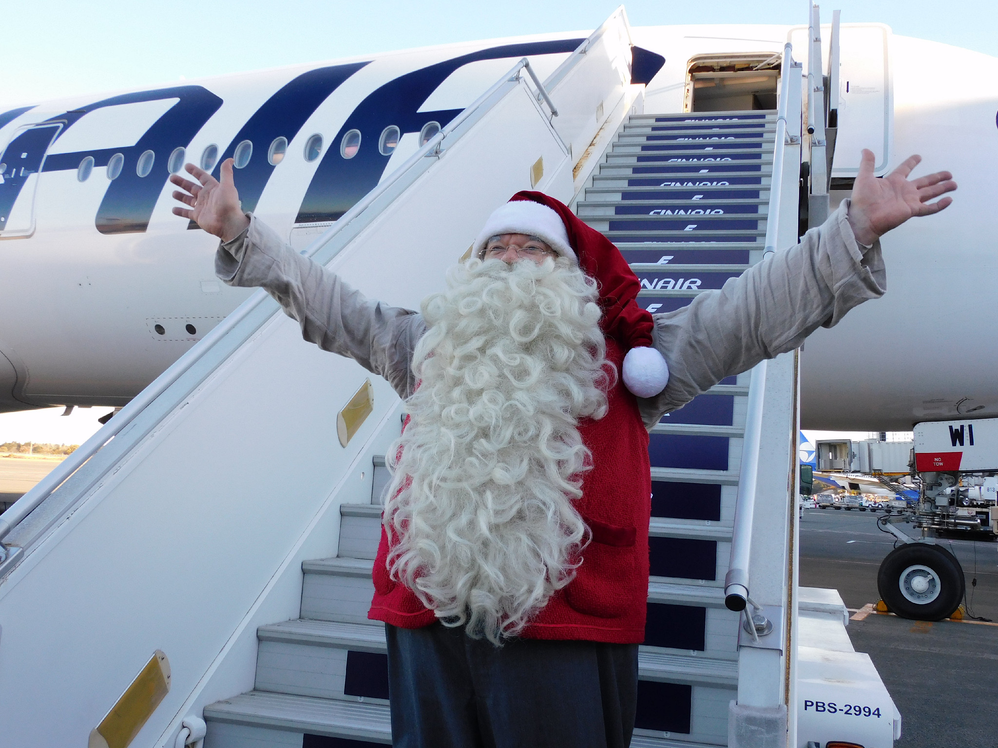 クリスマスを前に、フィンランドの財団公認のサンタクロースが28日、同国からの直行便で成田空港(千葉県成田市)にやってきた。サンタは大きく手を振り、豪快に笑いながら「メリークリスマス」と呼び掛けた。