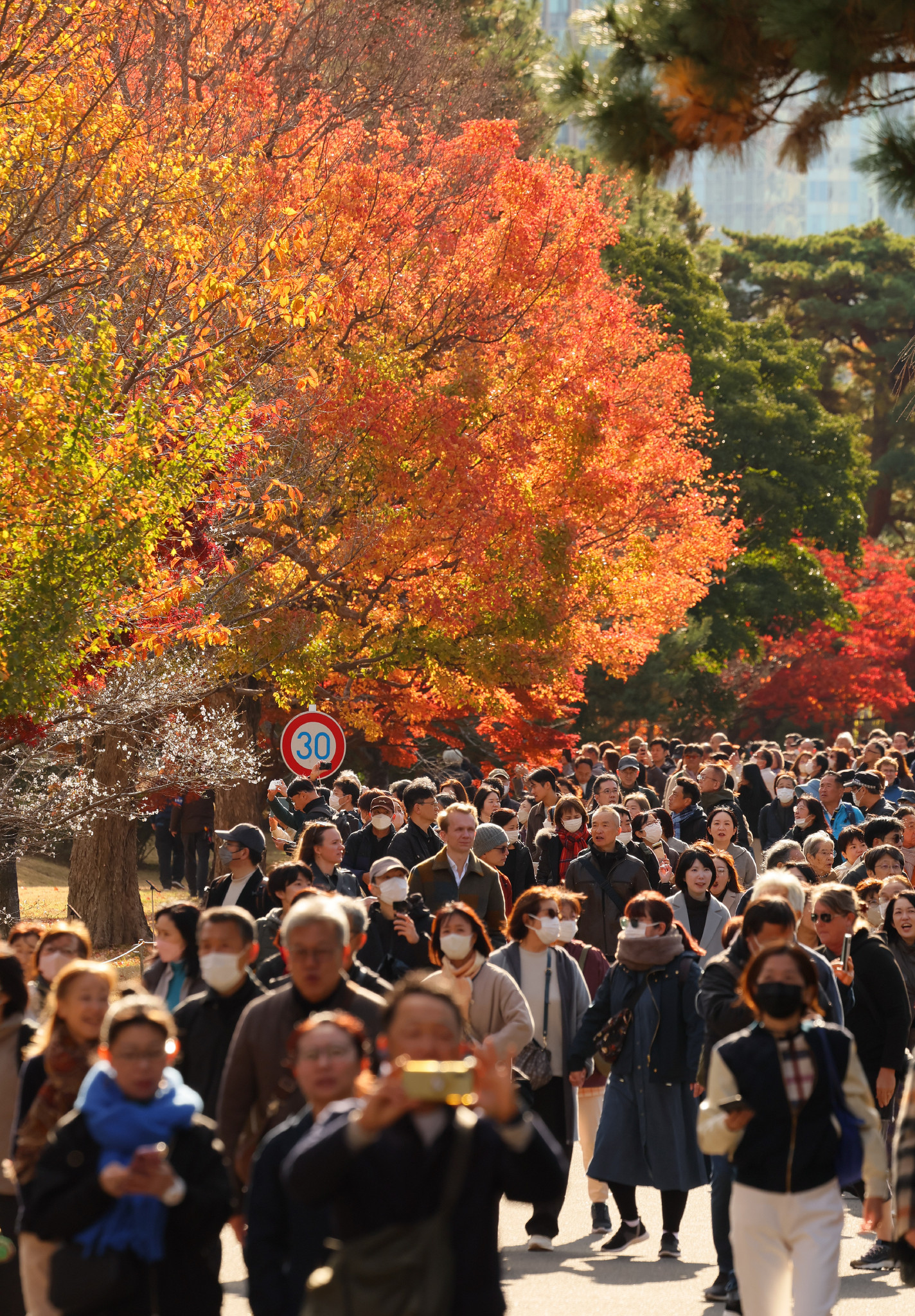 皇居・乾通りの秋の一般公開が29日、始まった。年2回、桜や紅葉が見頃の時期に行われており、今回は12月7日まで=29日午前、東京都千代田区