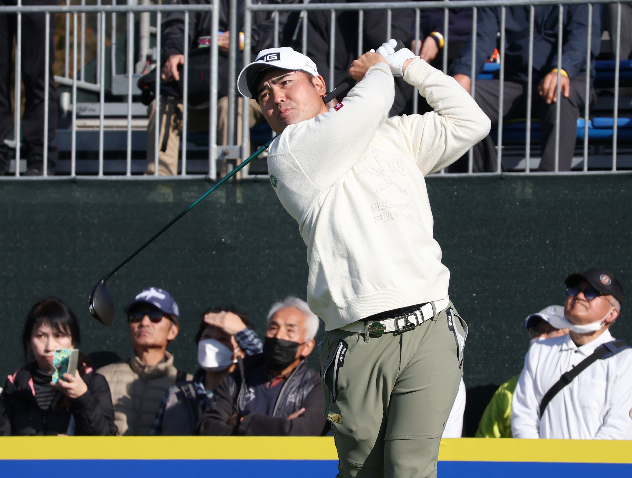 カシオ・ワールドオープン第3日。ティーショットを打つ蝉川泰果=29日、高知・Kochi黒潮CC
