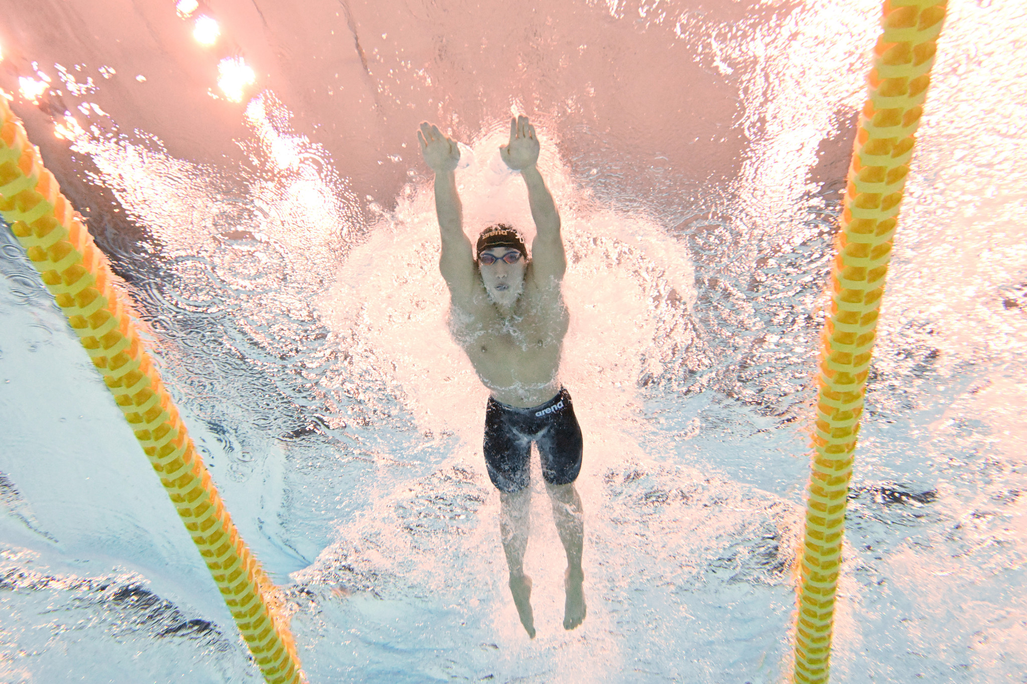 競泳ジャパンオープン。男子50メートル平泳ぎ決勝で力泳する大橋信=29日、東京アクアティクスセンター