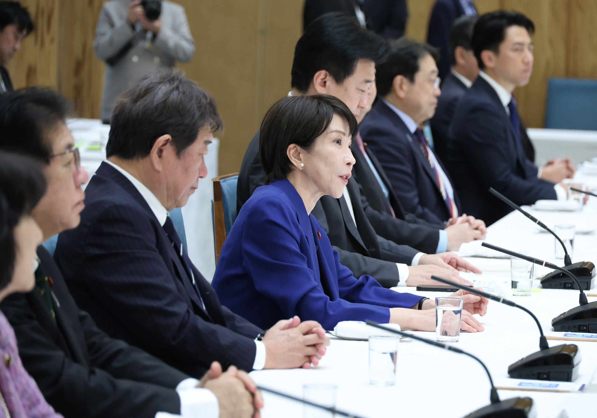 政府・与党連絡会議で発言する高市首相