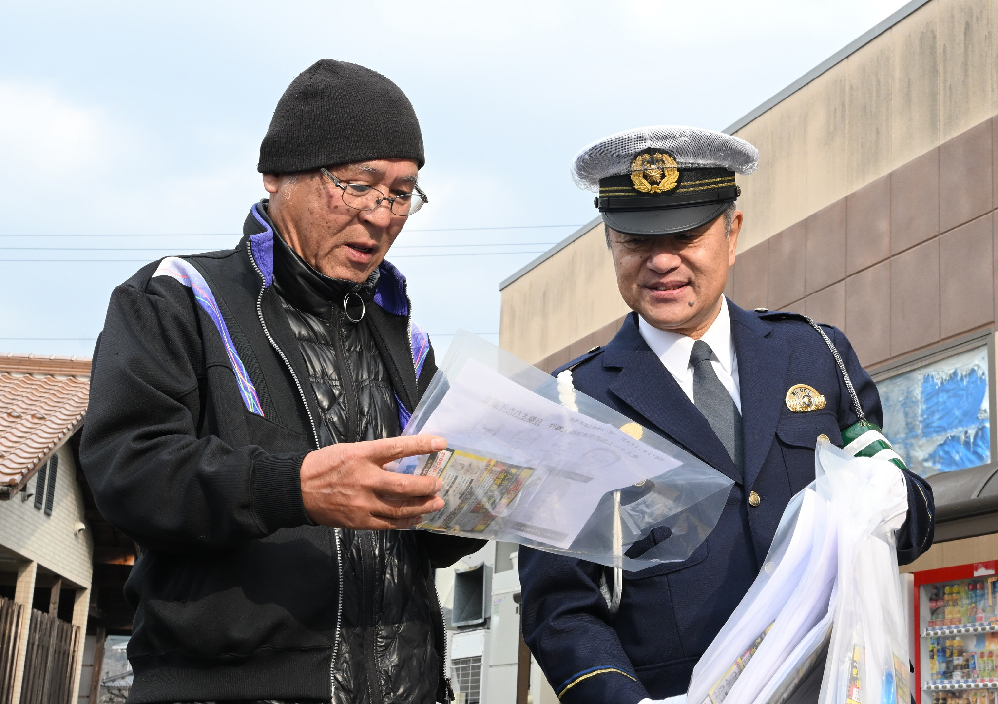 広島県北広島町大朝で2000年12月、特別養護老人ホーム「やすらぎ」施設長の郷田和昭さんが刺殺された事件は8日、未解決のまま25年を迎えた。写真は情報提供を呼び掛ける広島県警山県署の小田豊署長(右)。