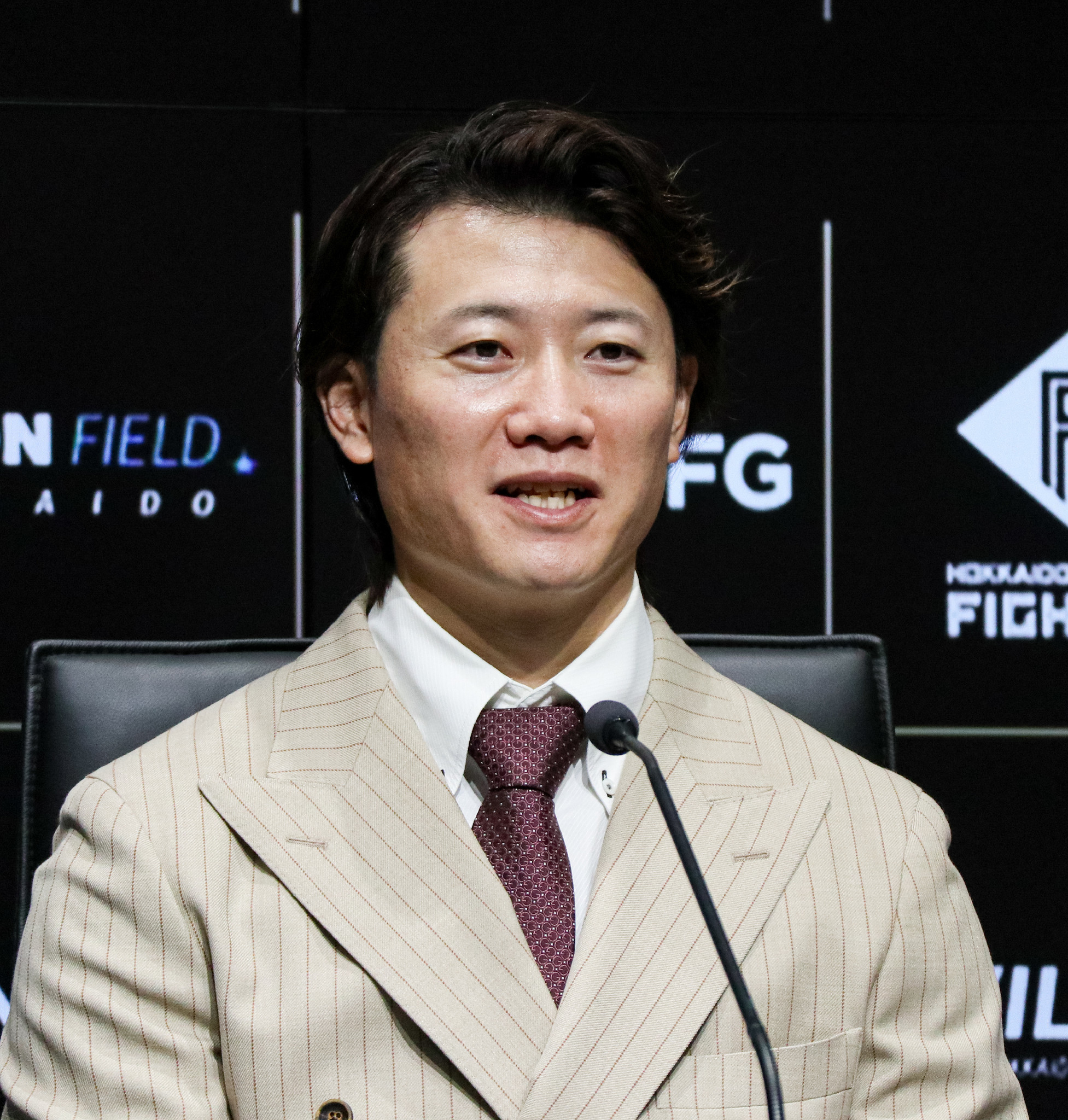 日本ハムへの復帰が決まり記者会見する西川遥輝外野手=8日、エスコンフィールド北海道