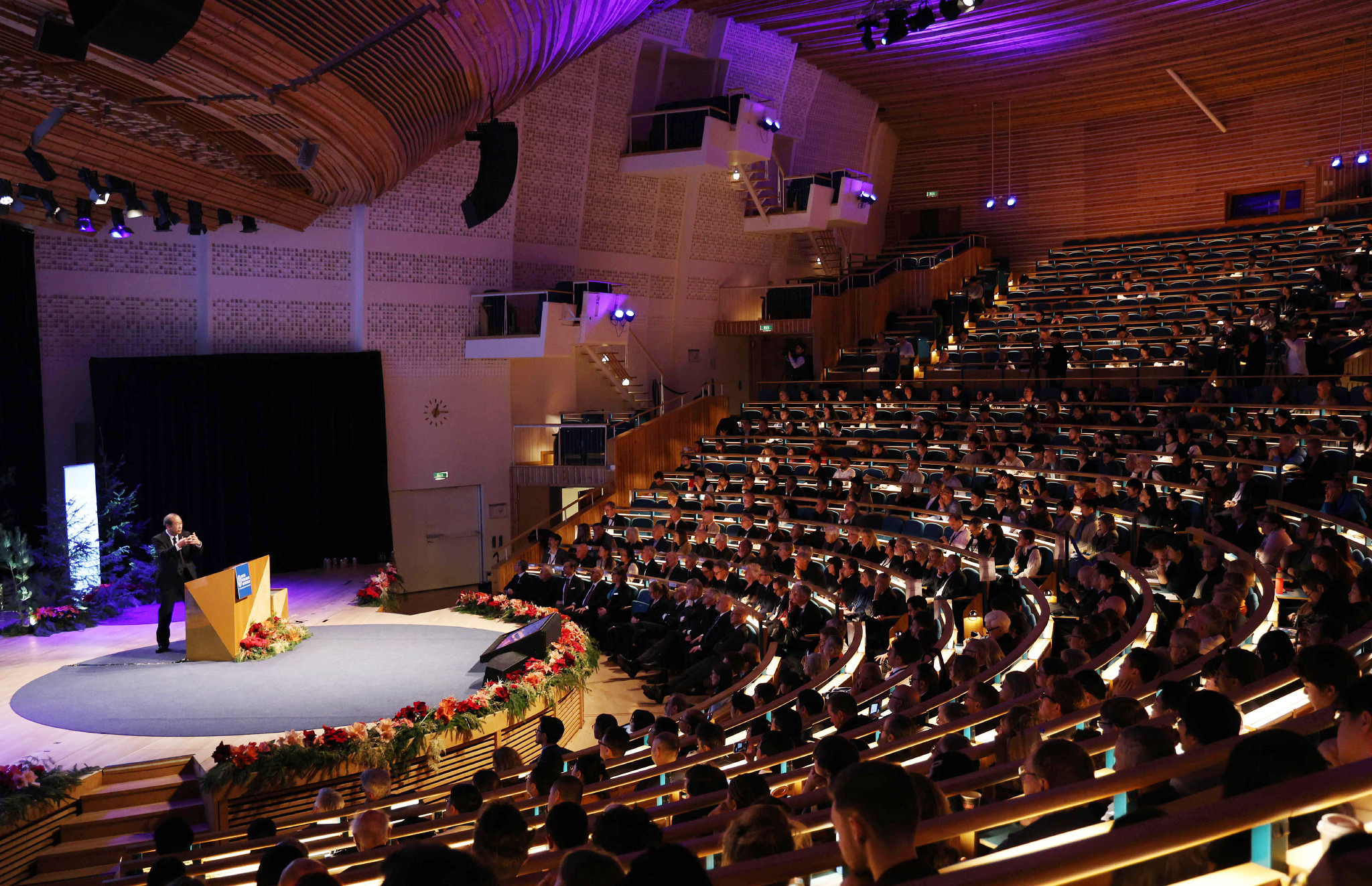 記念講演するノーベル化学賞に選ばれた京都大の北川進特別教授=8日、ストックホルム