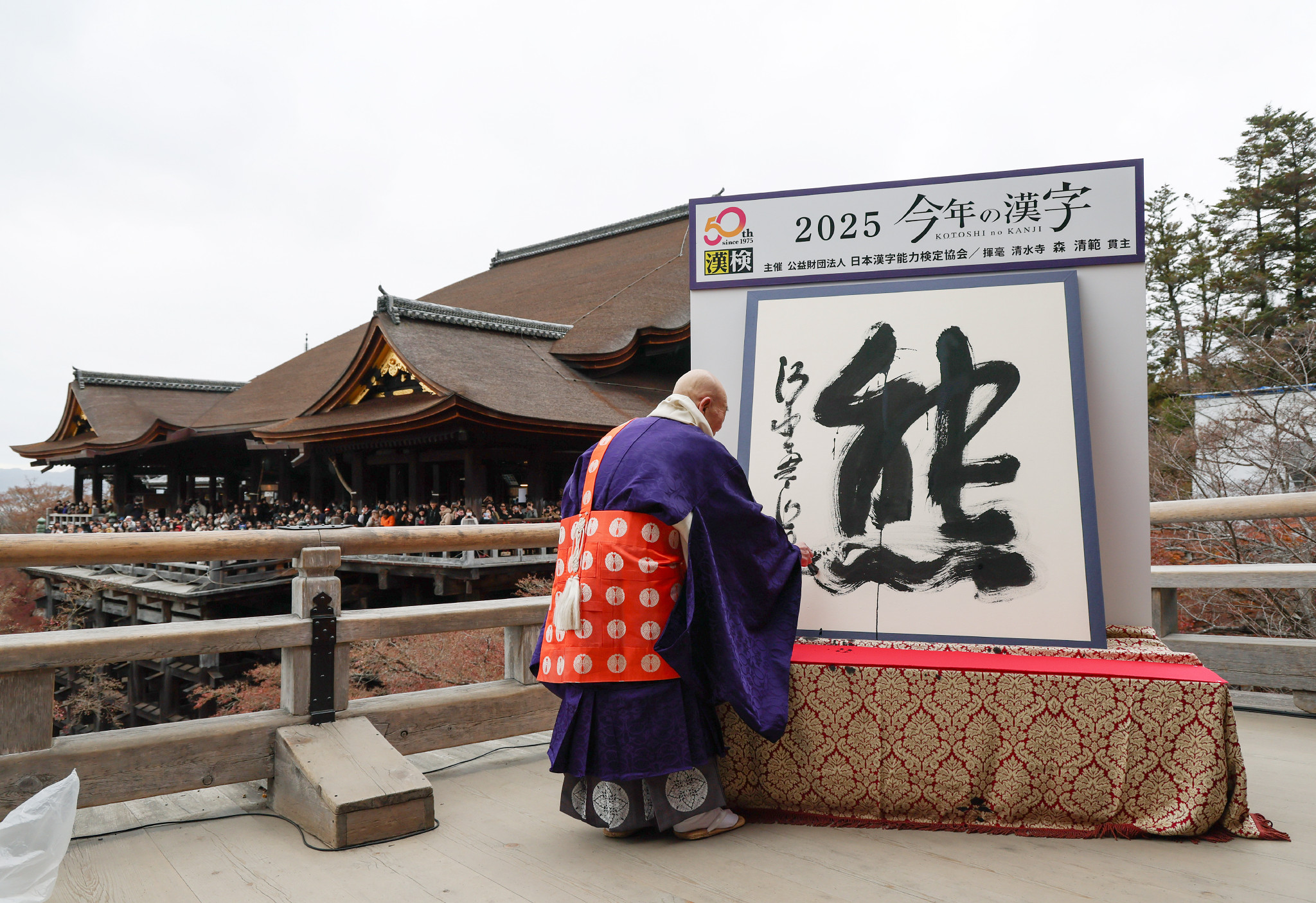 2025年の世相を表す「今年の漢字」に「熊」が選ばれ、京都市東山区の清水寺で12日、森清範貫主が揮毫(きごう)した。全国各地で「熊」の被害が相次ぎ、国民の関心と不安が集中したことなどを反映した。