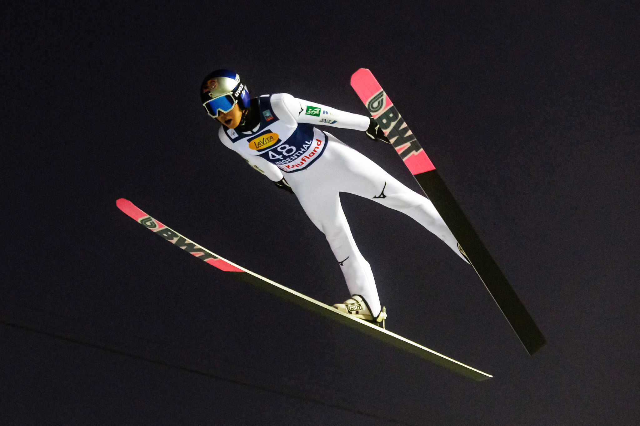 ジャンプ男子個人第8戦、小林陵侑の飛躍=13日、ドイツ・クリンゲンタール
