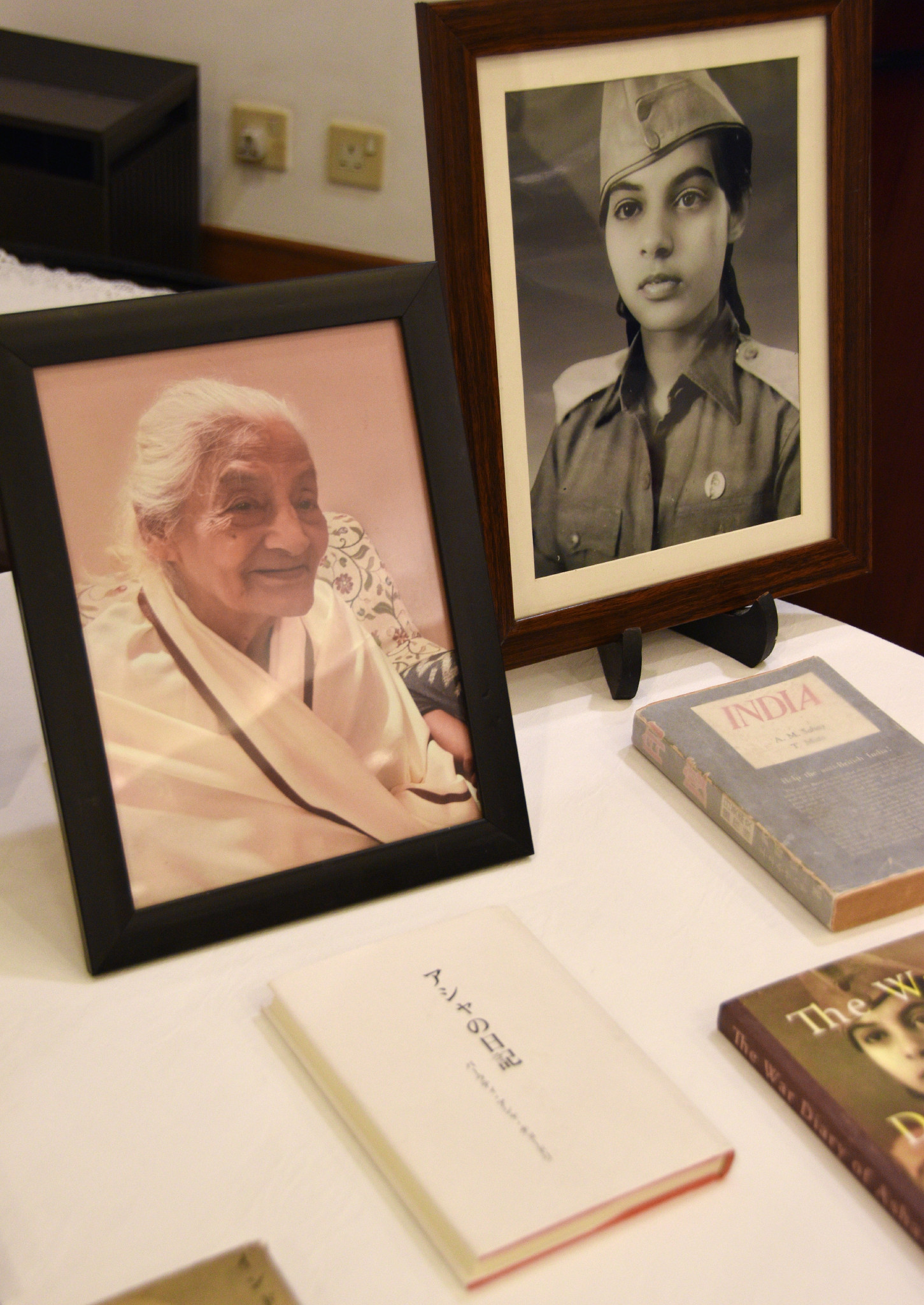 小野啓一駐インド大使は17日、日印の相互理解や友好に貢献したとして、故バーラティ・アシャ・チョードリーさんに在外公館長表彰を授与した。写真はアシャさんの遺影や日記=ニューデリーの日本大使公邸