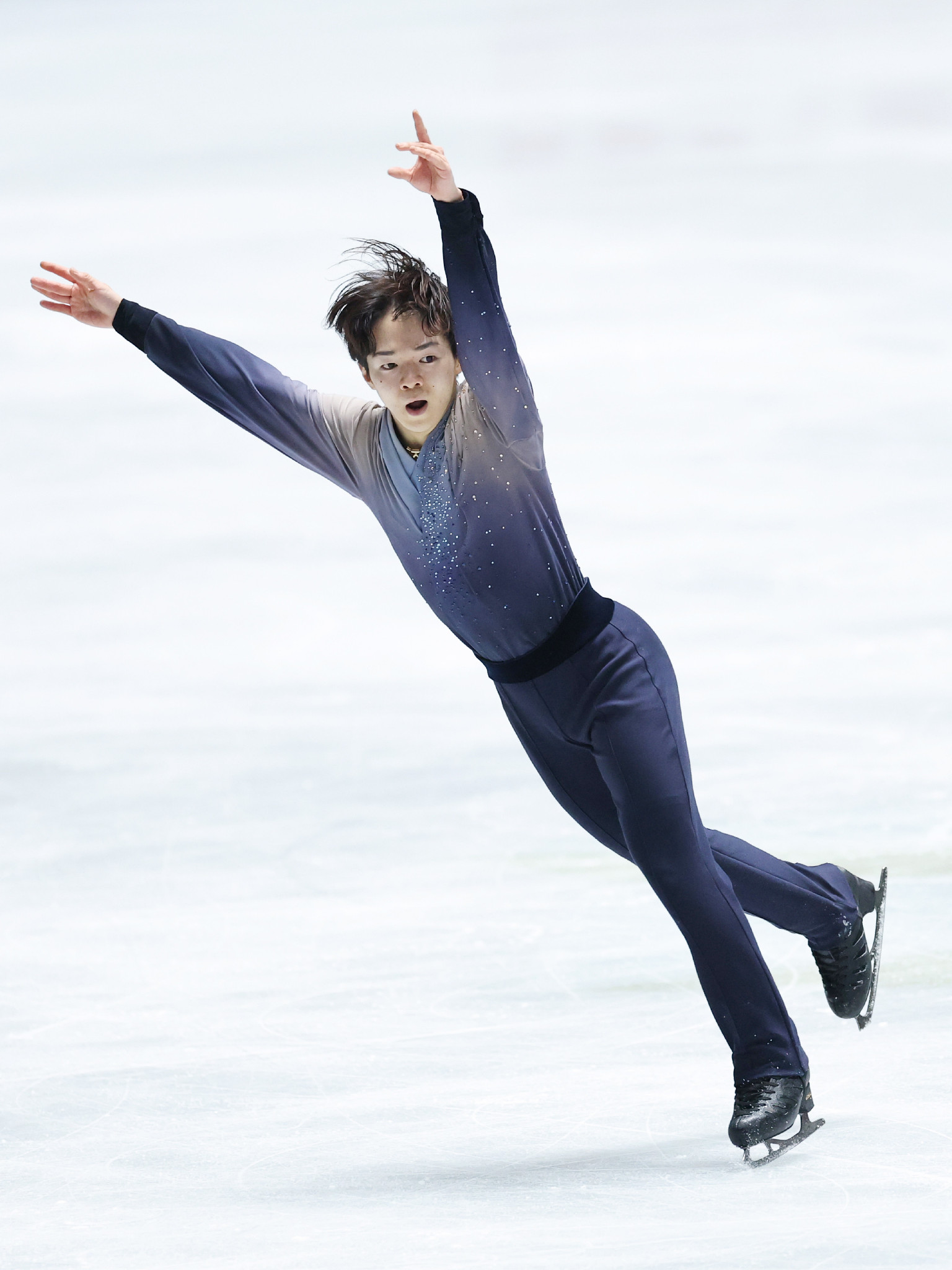 男子フリーで演技する鍵山優真=20日、東京・国立代々木競技場
