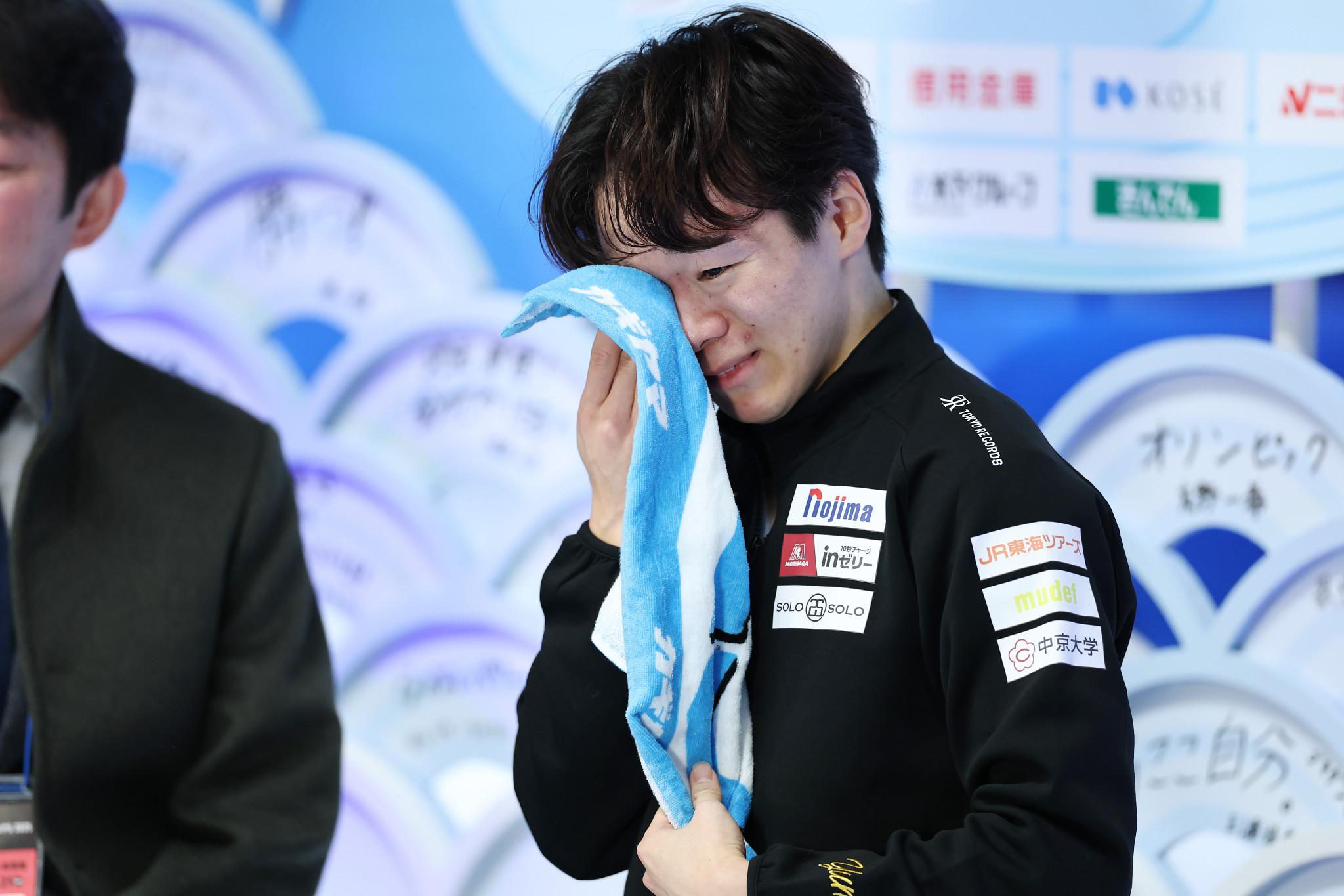 男子フリーの演技を終え、涙を流す鍵山優真=20日、東京・国立代々木競技場