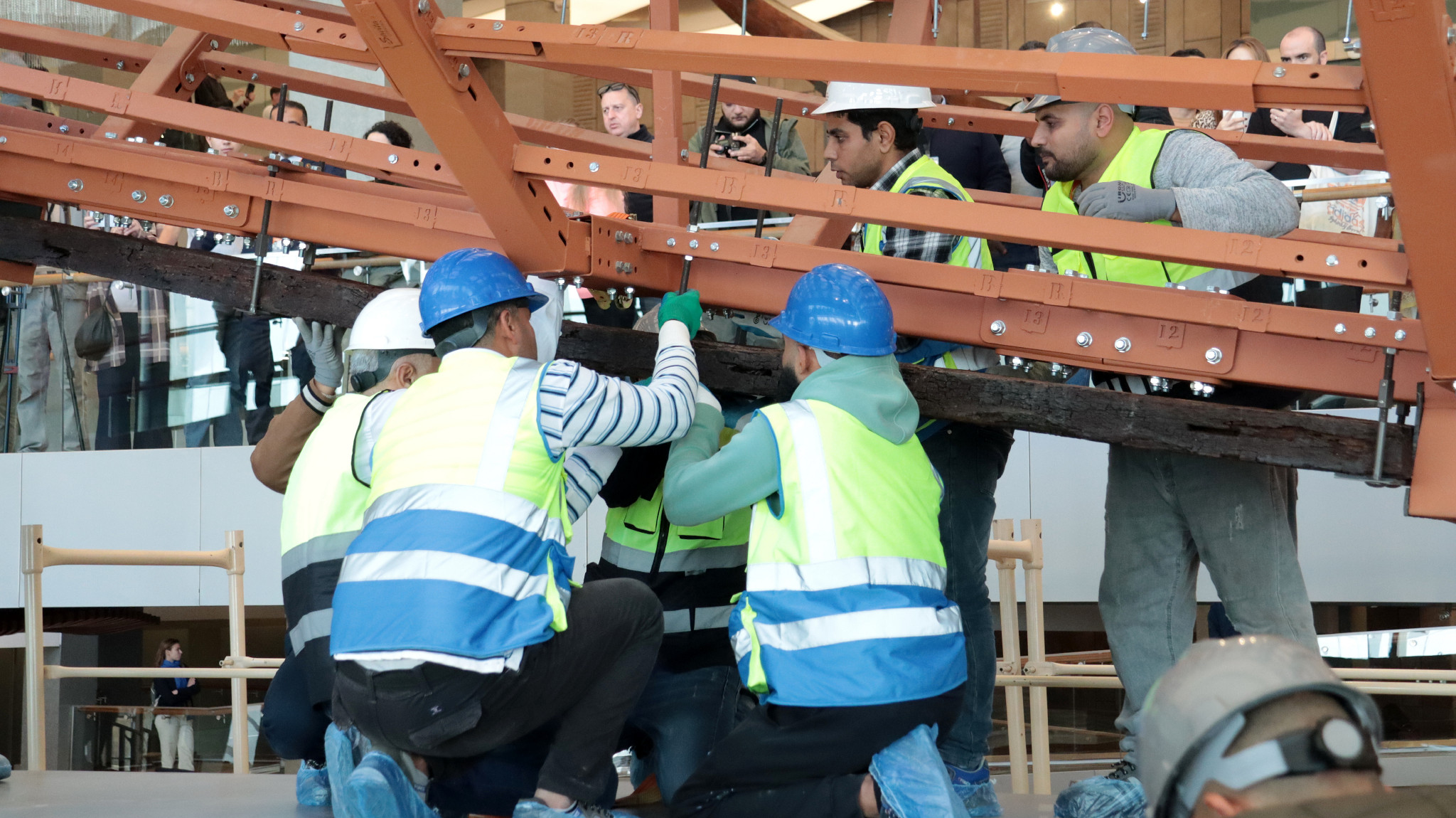 エジプトの首都カイロ近郊ギザにある大エジプト博物館(GEM)で23日、世界最古の大型木造船とされる「第2の太陽の船」の復元作業が公開された。