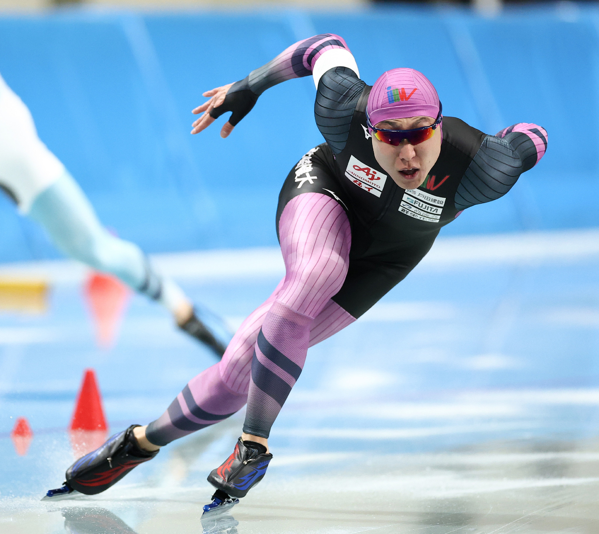 滑走する新濱 全日本スピードスケート