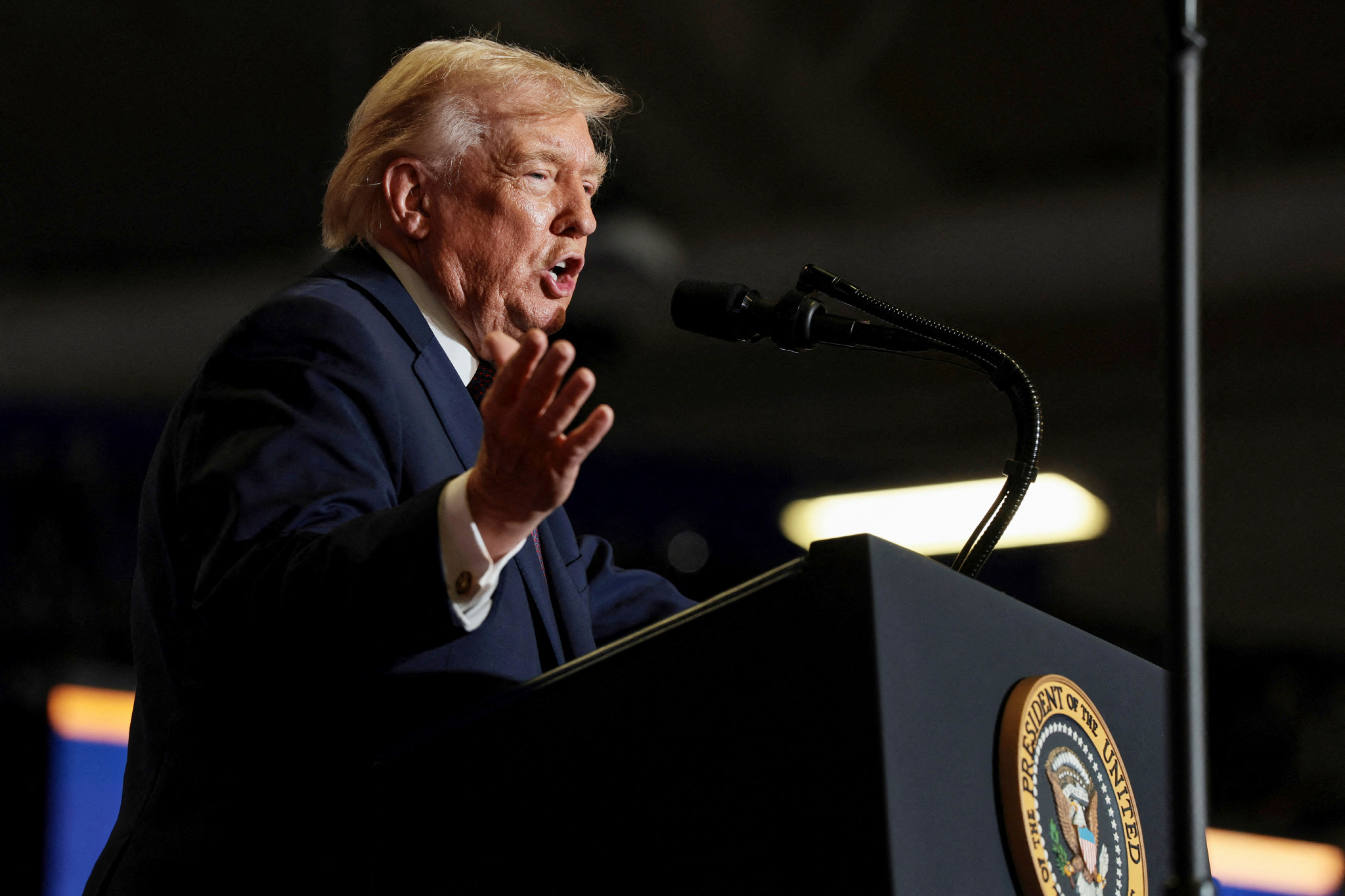 米連邦政府のつなぎ予算が2026年1月30日に期限を迎える。予算切れになれば、今秋に続き、再び政府機関の一部閉鎖を余儀なくされる。写真は演説するトランプ大統領=19日撮影、米ノースカロライナ州【ロイター時事】