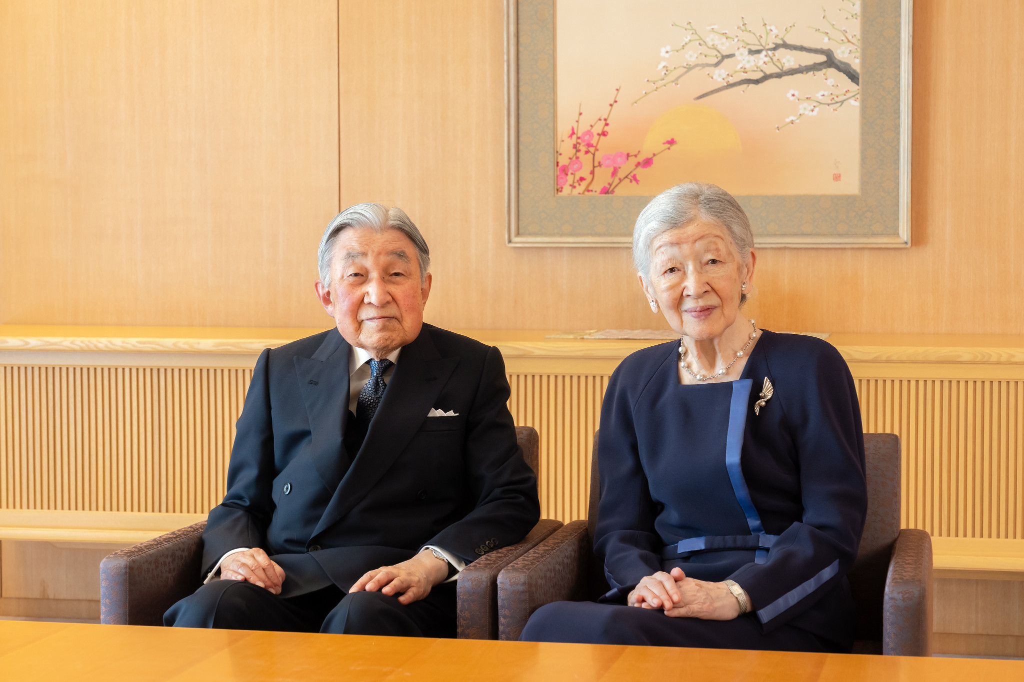 新年を前に、撮影に臨まれる上皇ご夫妻=2025年12月16日、東京都港区の仙洞御所(宮内庁提供)