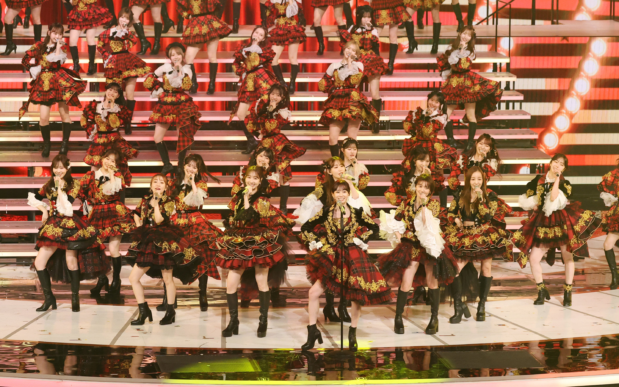 第76回NHK紅白歌合戦で元メンバーも加わって歌唱するAKB48=12月31日、東京・渋谷のNHKホール
