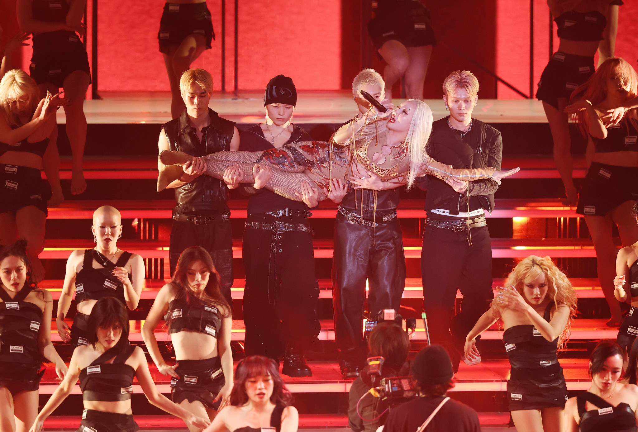 第76回NHK紅白歌合戦で歌唱するちゃんみなさん(中央)=12月31日、東京・渋谷のNHKホール