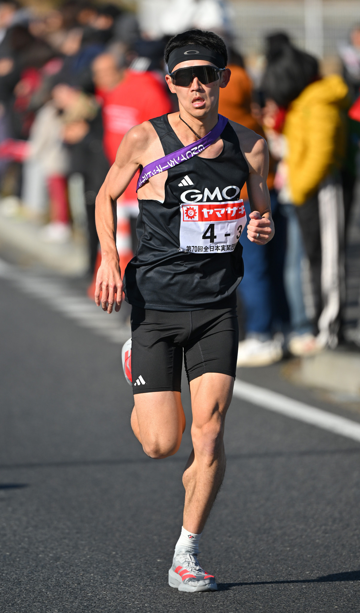 3区で先頭を走るGMOインターネットグループの鈴木塁人=1日、群馬県内(代表撮影)