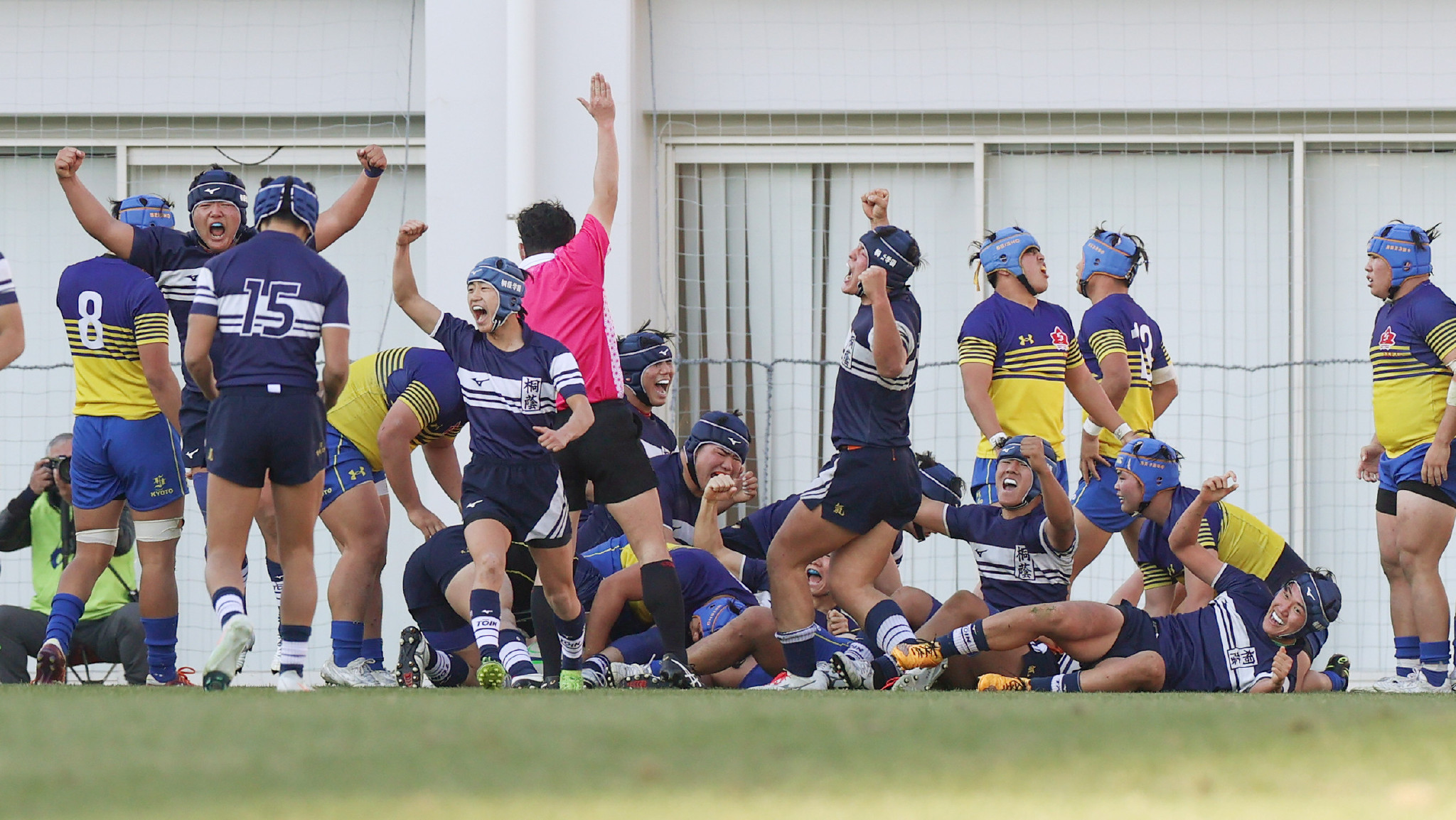 喜ぶ桐蔭学園の選手 高校ラグビー