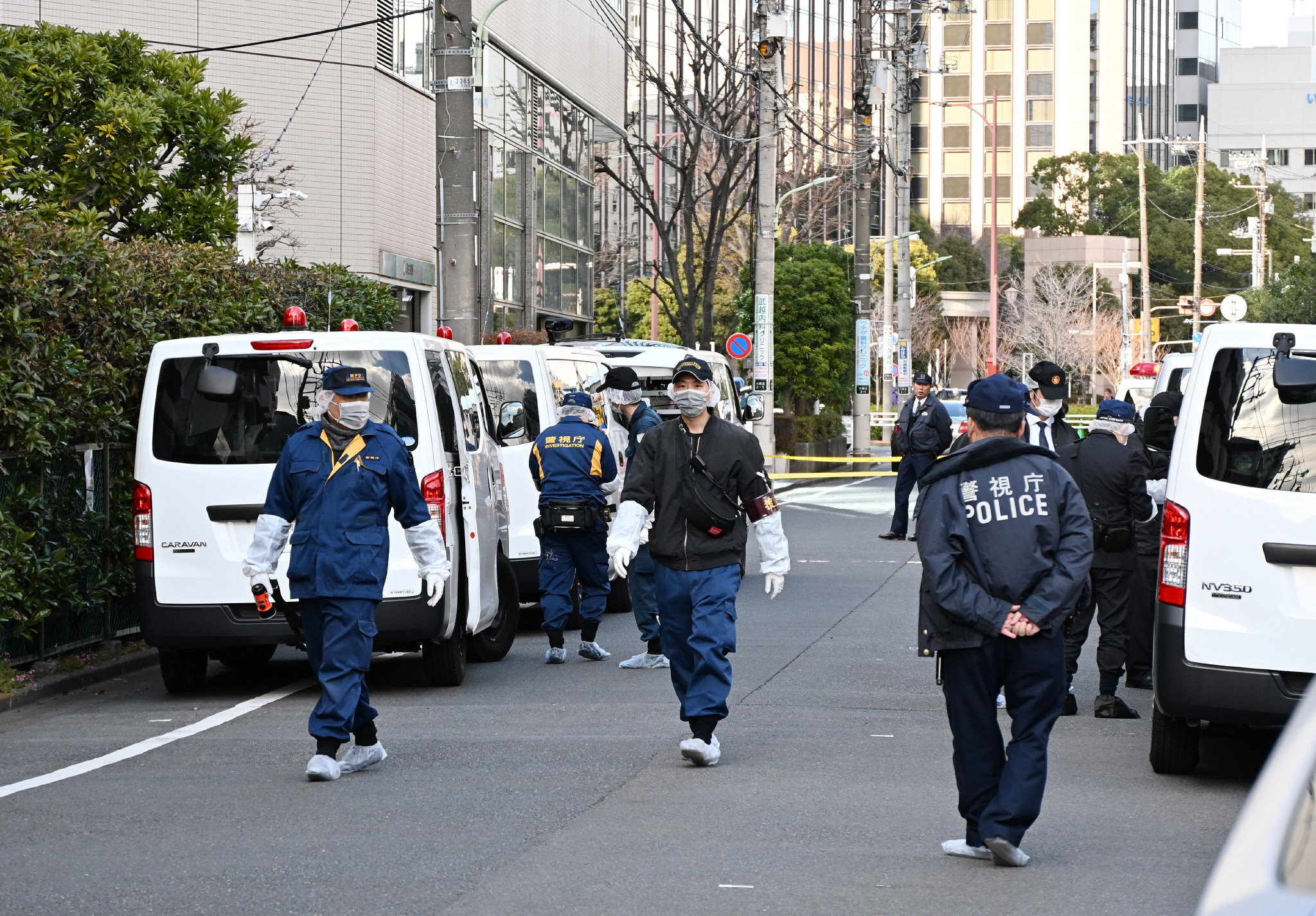 現場付近を調べる捜査員