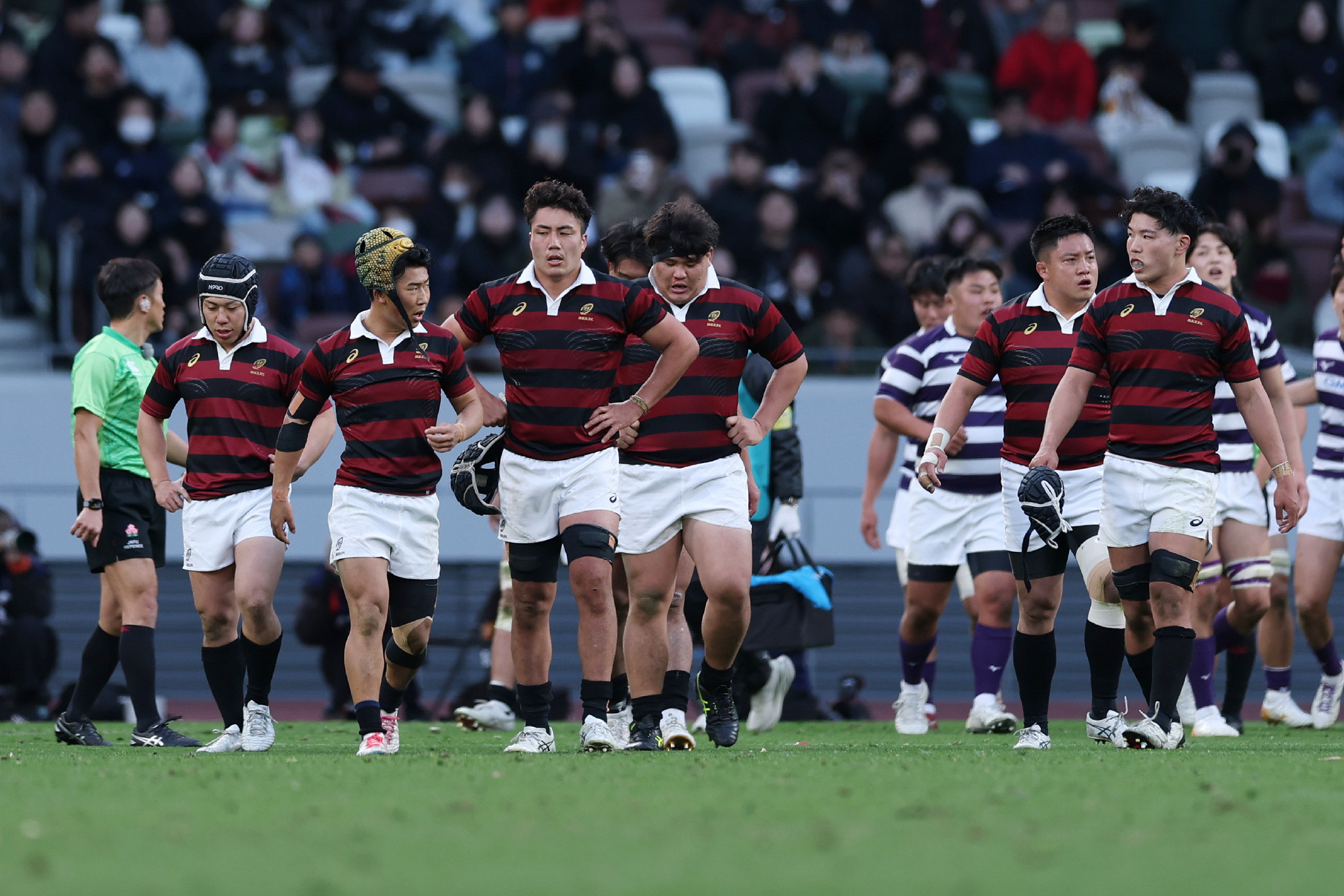 ラグビーの第62回全国大学選手権。明大に敗れ、肩を落とす早大の選手ら=11日、東京・MUFGスタジアム