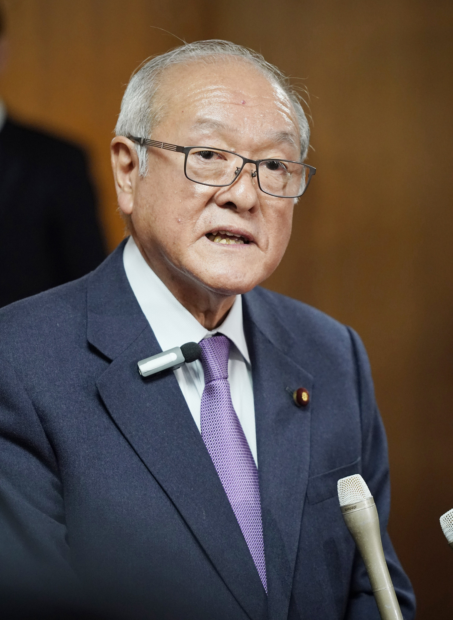 記者団の取材に応じる自民党の鈴木俊一幹事長=14日午後、東京・永田町の同党本部