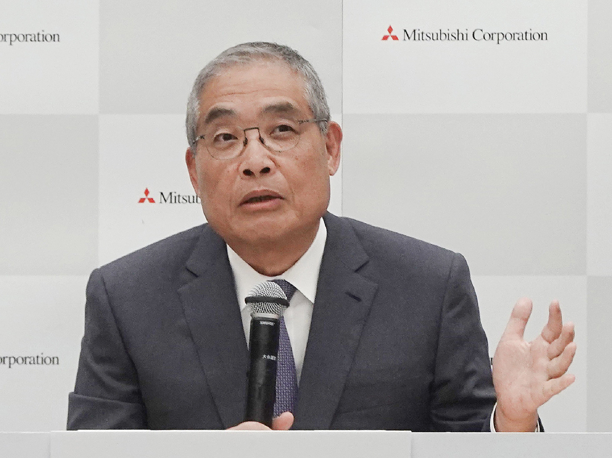 三菱商事は16日、米国南部のシェールガス事業に参画すると発表した。写真は記者会見する中西勝也社長=同日午後、東京都千代田区