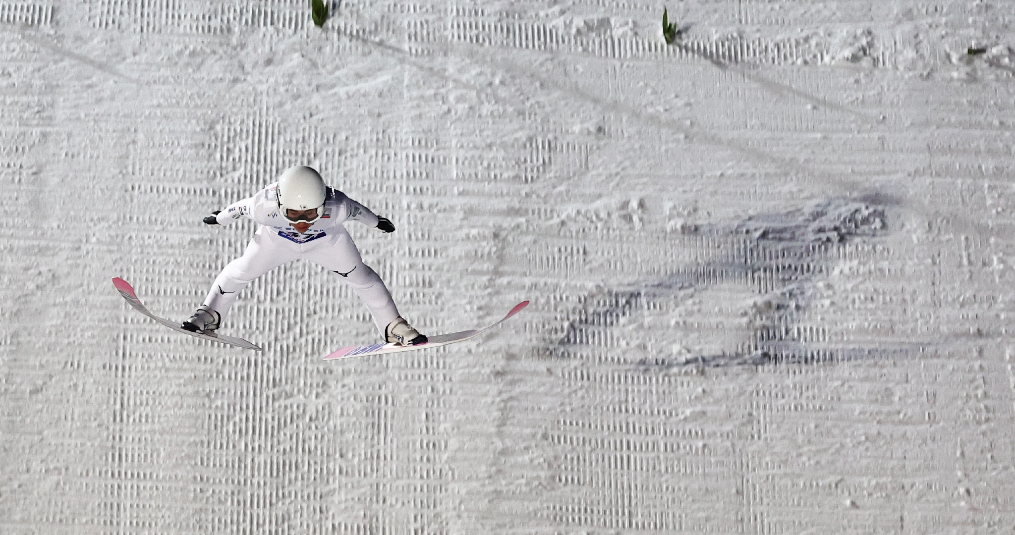 ノルディックスキーのワールドカップ(W杯)ジャンプ男子。2位に入った中村直幹の飛躍=17日、札幌市大倉山ジャンプ競技場