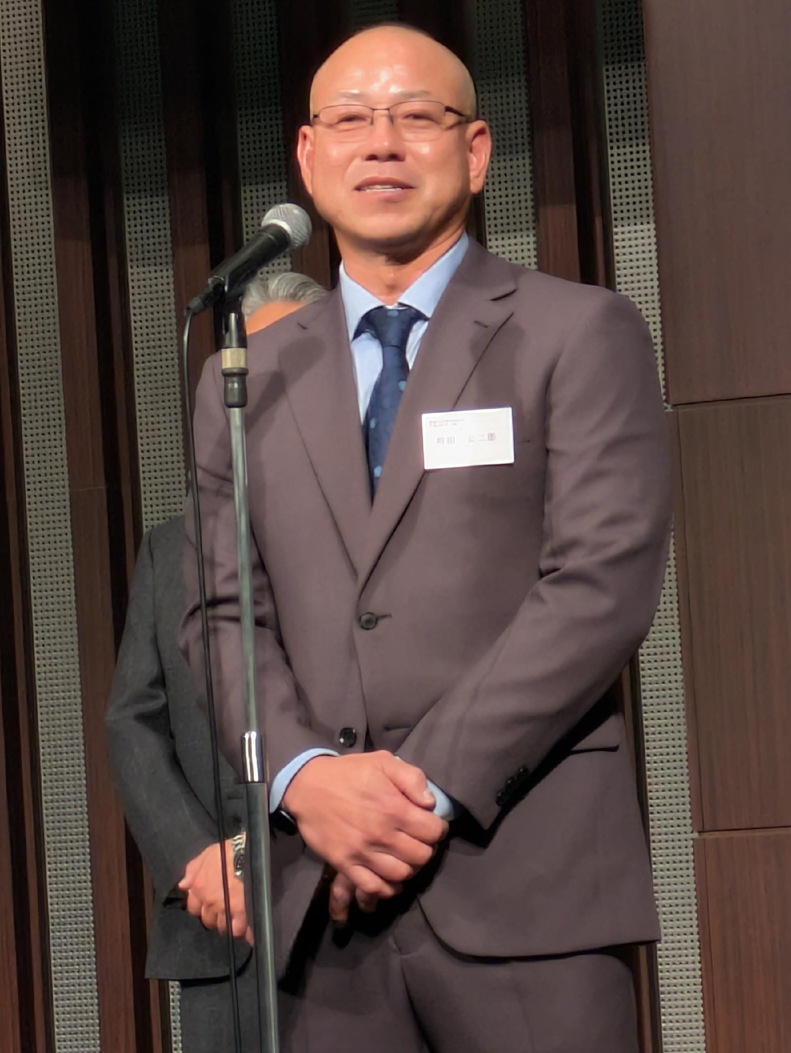 専大野球部の創部100周年記念祝賀会であいさつする町田公二郎さん=17日、東京都港区
