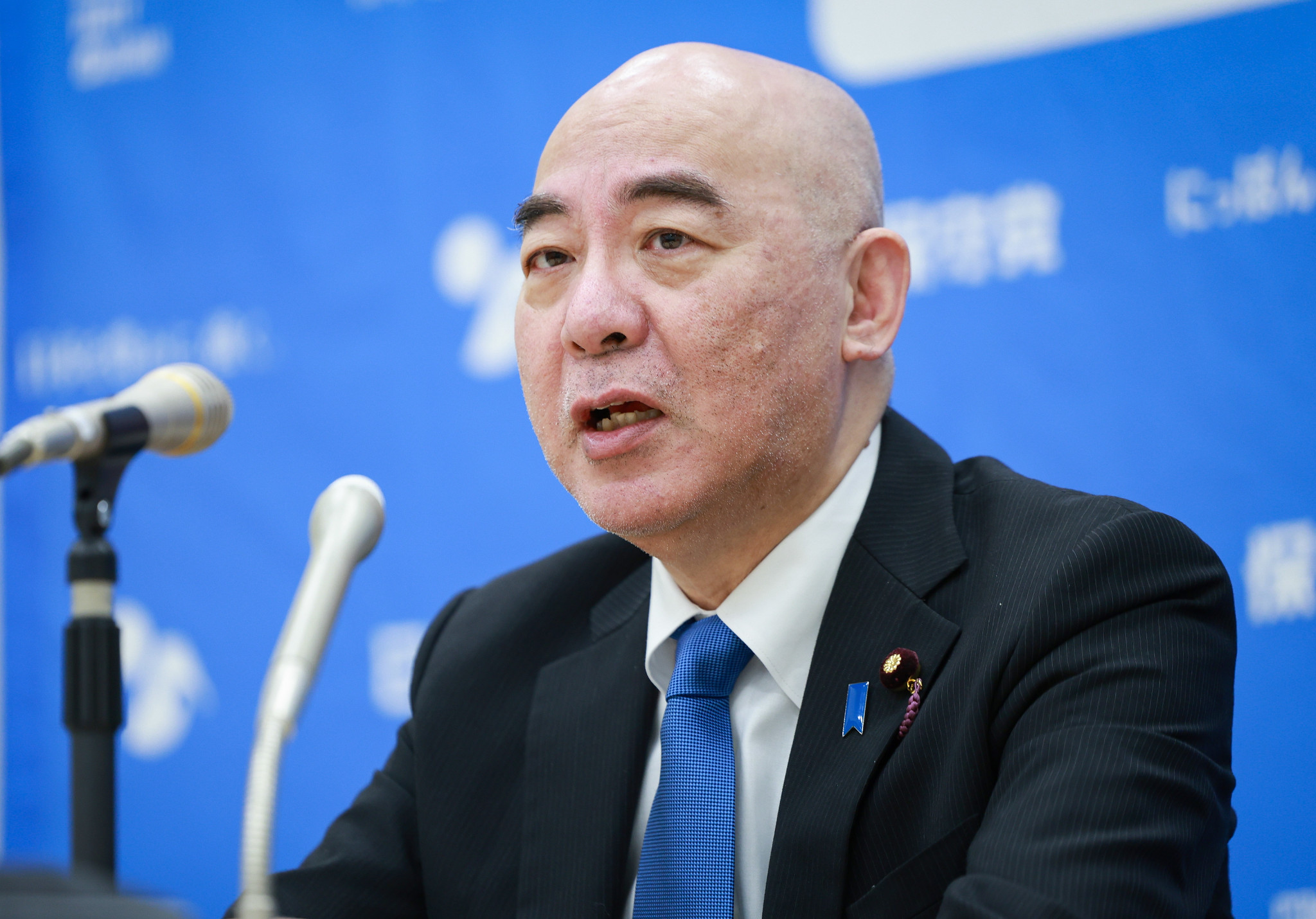 会見する日本保守党の百田尚樹代表=20日午後、国会内