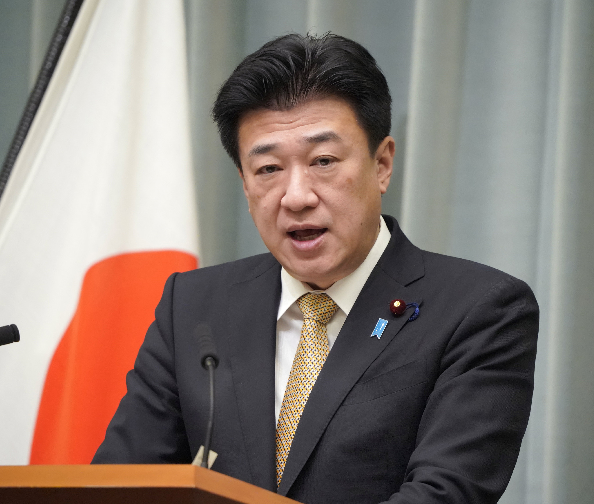 記者会見する木原官房長官