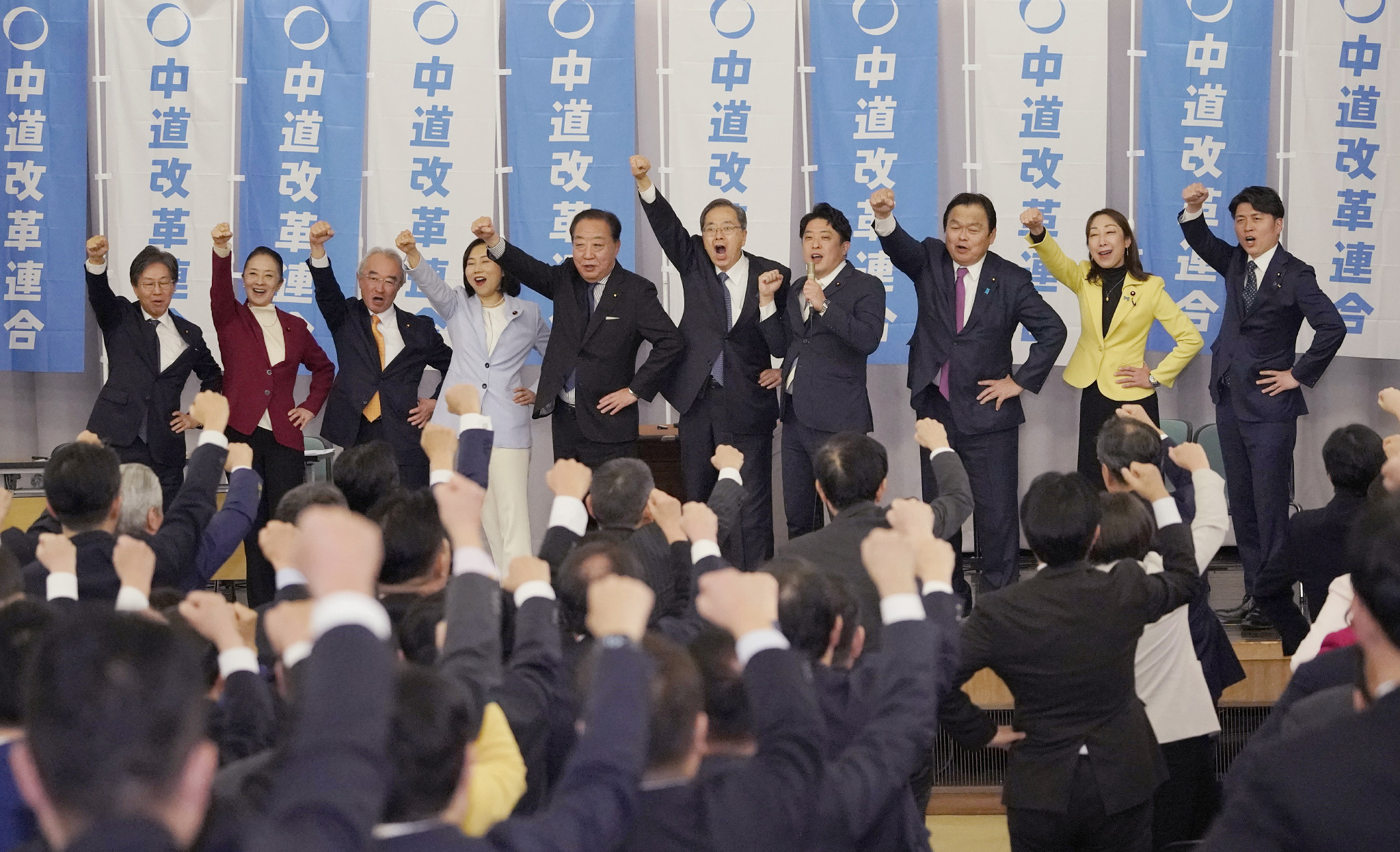 新党「中道改革連合」は22日、国会内で結党大会を開いた。立憲民主、公明両党の衆院議員ほぼ全員が参加し、170人規模の野党第1党が誕生。公示が27日に迫った衆院選(2月8日投開票)で比較第1党を目指す。