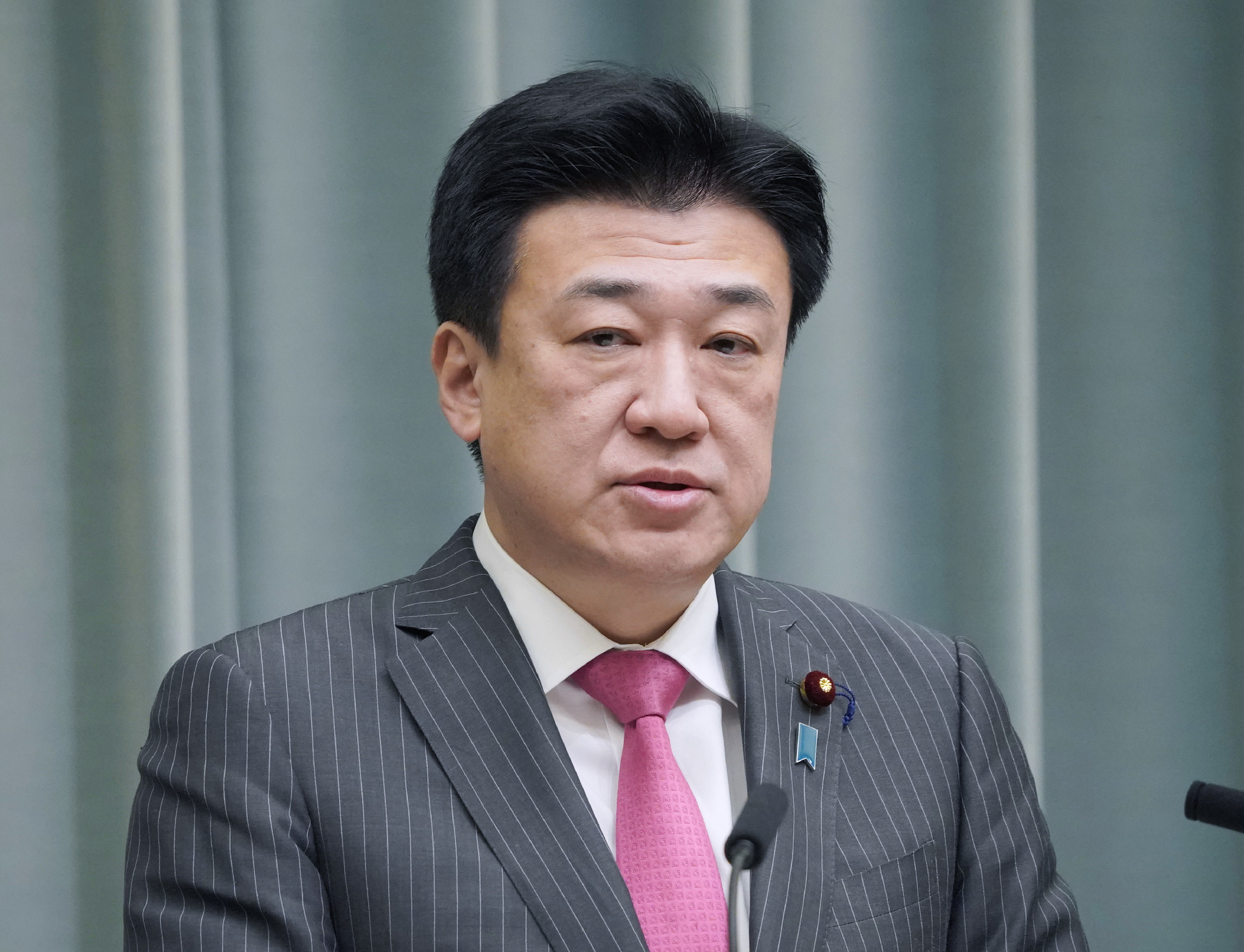 記者会見する木原官房長官