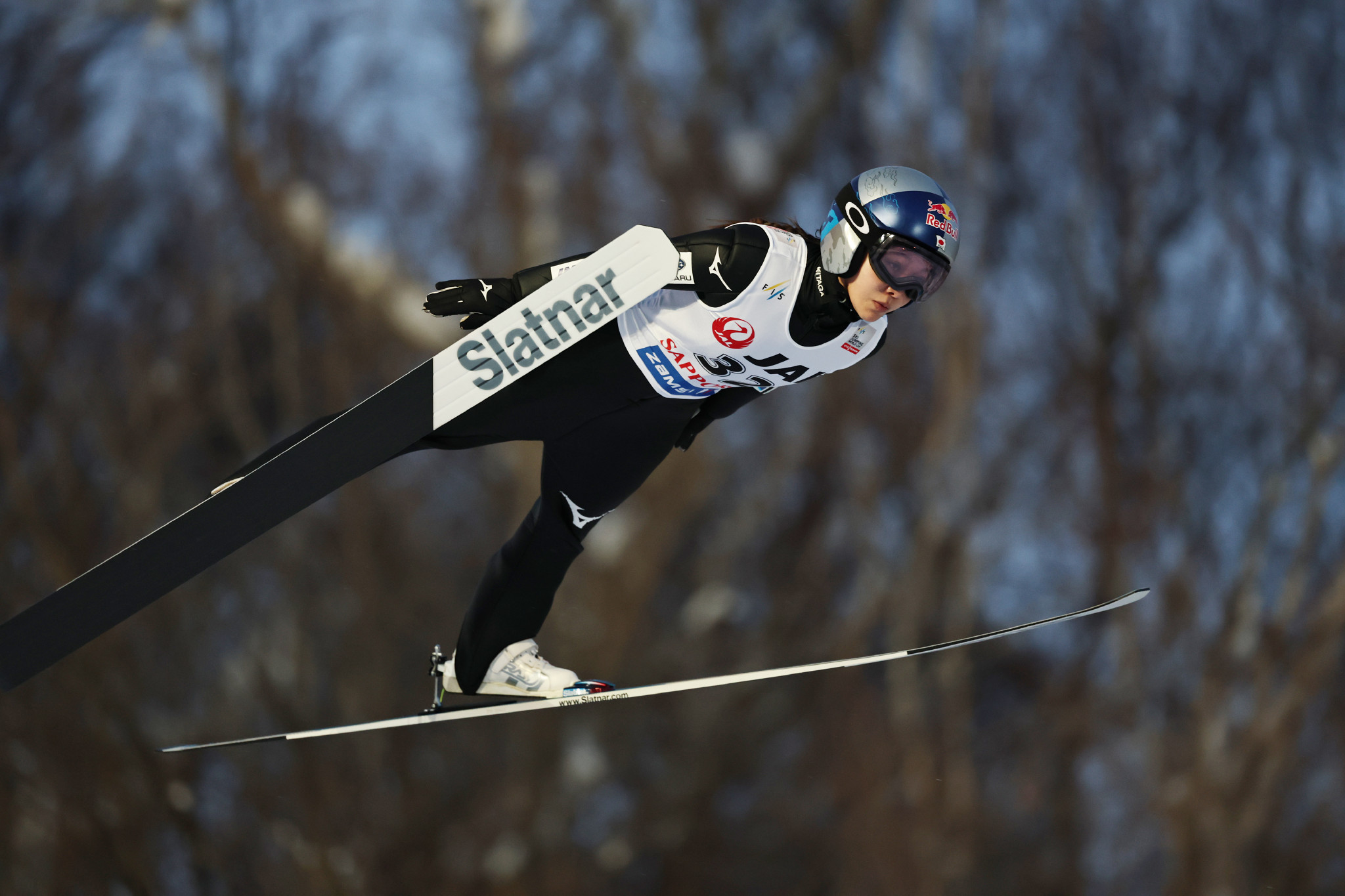 W杯ジャンプ女子個人第21戦、高梨沙羅の飛躍=24日、札幌市大倉山ジャンプ競技場
