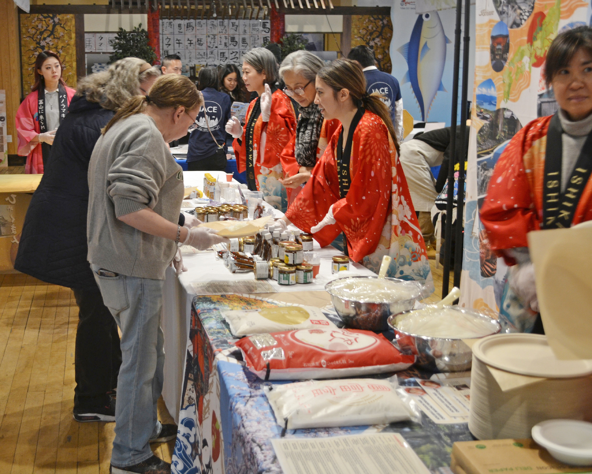 石川、富山、福井の3県が開いたおにぎりの握り方を紹介するイベント=24日、米ニューヨーク