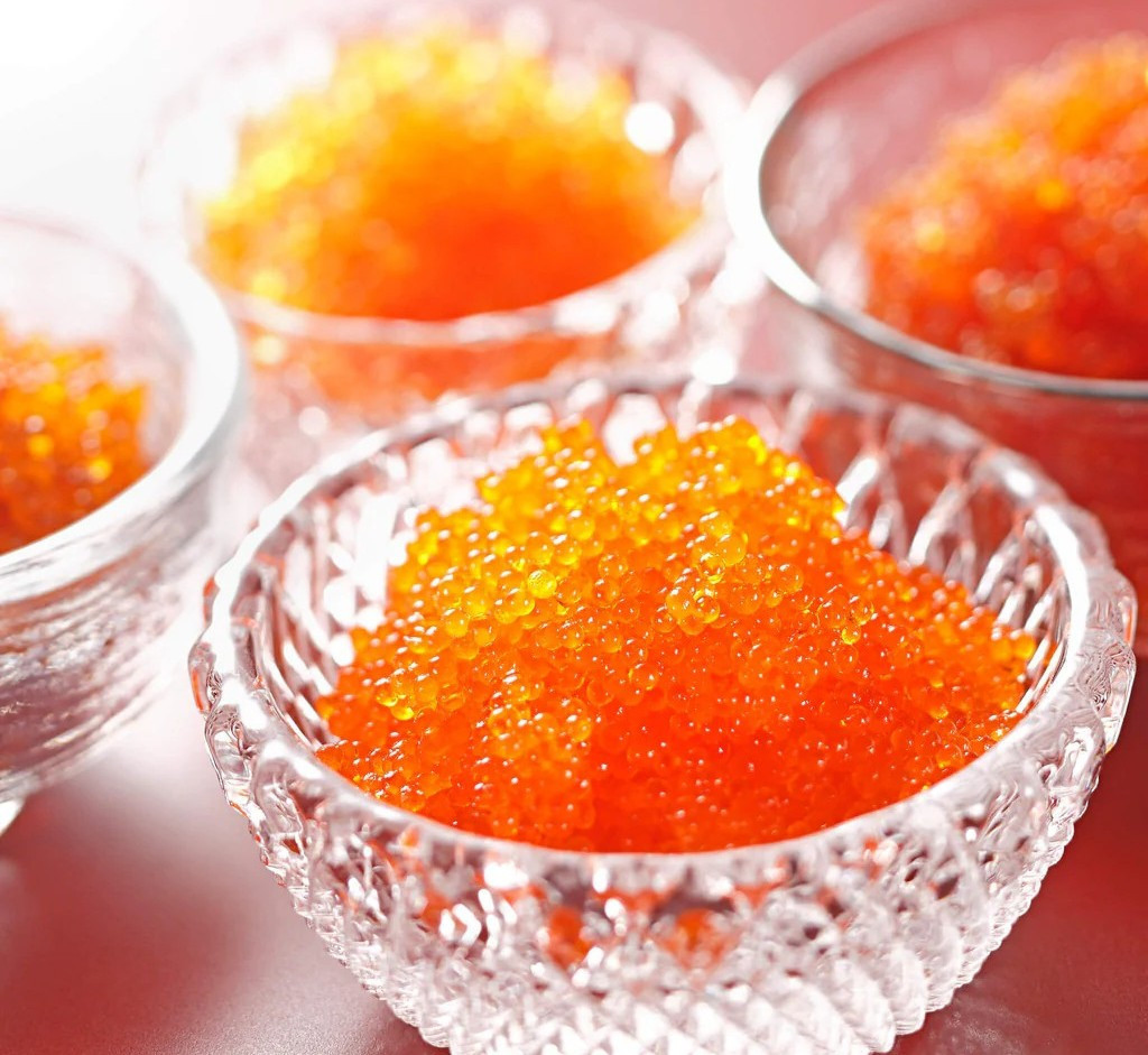 魚卵の中でかつて脇役だったトビウオの卵が、海外での需要増などを背景に人気が上昇し、カズノコやシシャモの卵をしのぐほど高値となっている。写真はトビウオの卵を着色、味付けした「とびっこ」(かね徳提供)