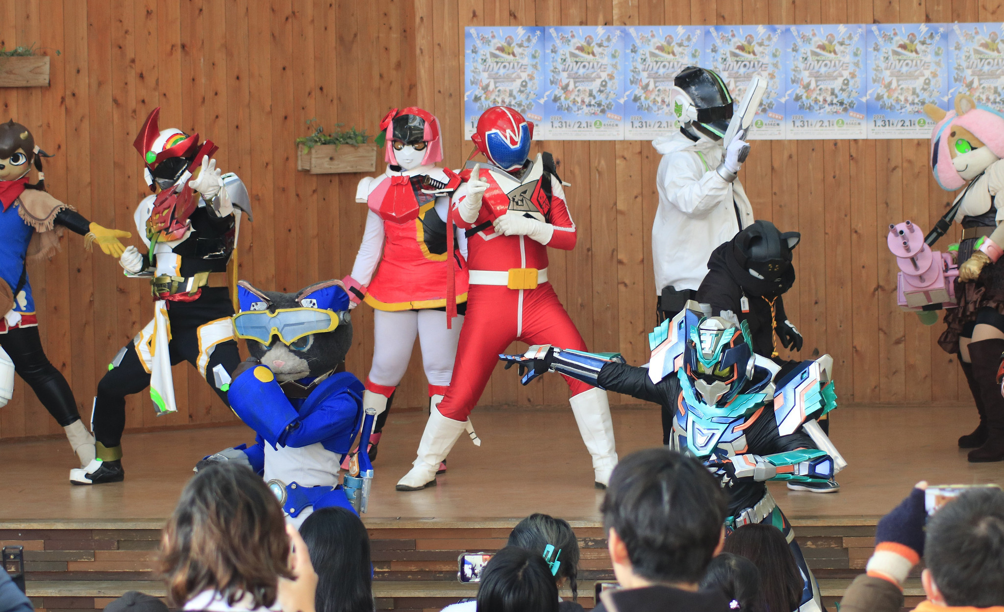 佐賀市職員が扮(ふん)するローカルヒーロー「熱風!SG戦士なつレンジャー」が中心となり、全国のローカルヒーローが集合するイベント「2026ローカルヒーローINVOLVEサーガ」が同市で開かれた=1日
