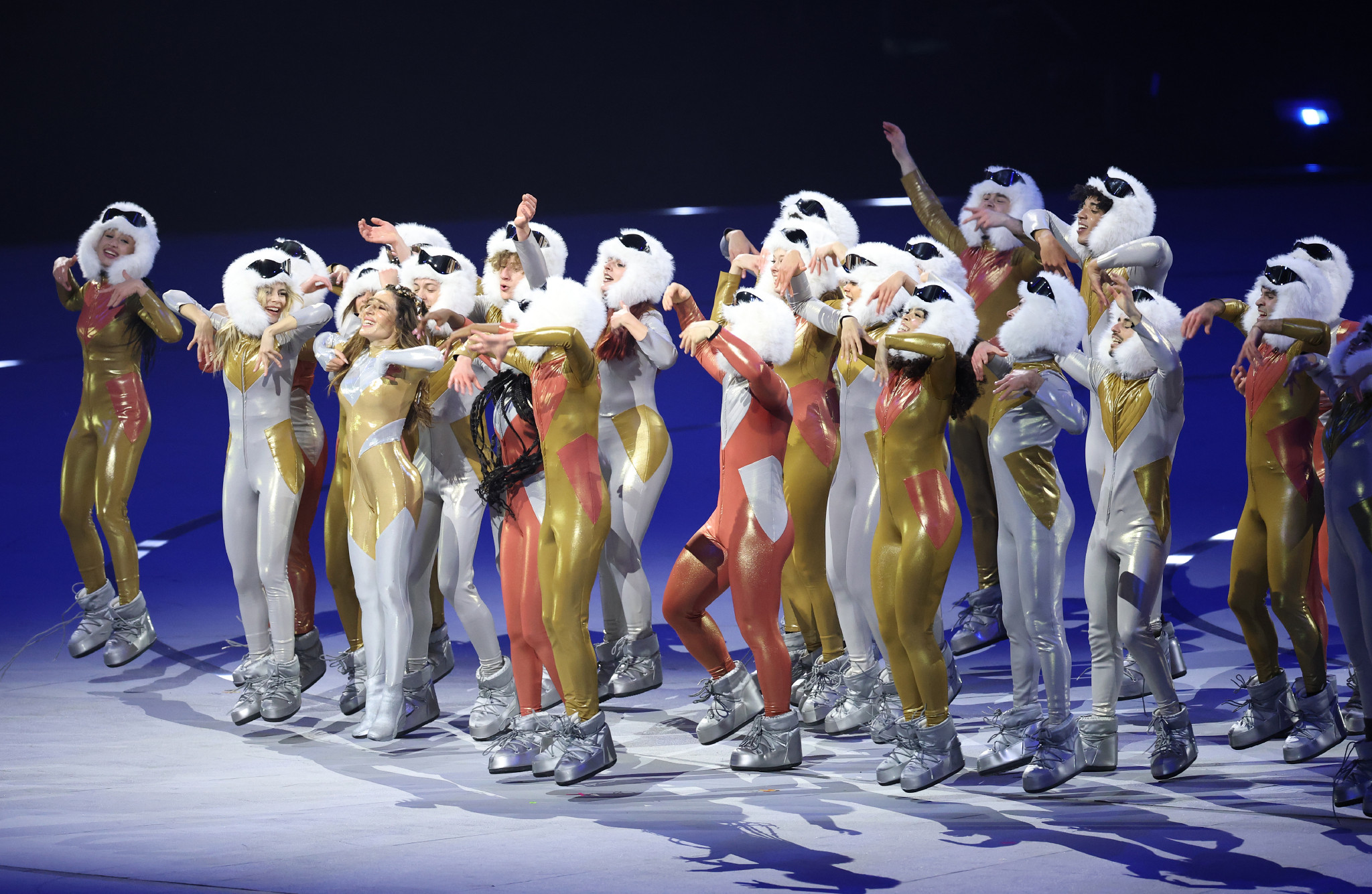 開会式で披露されたアトラクション=6日、ミラノ