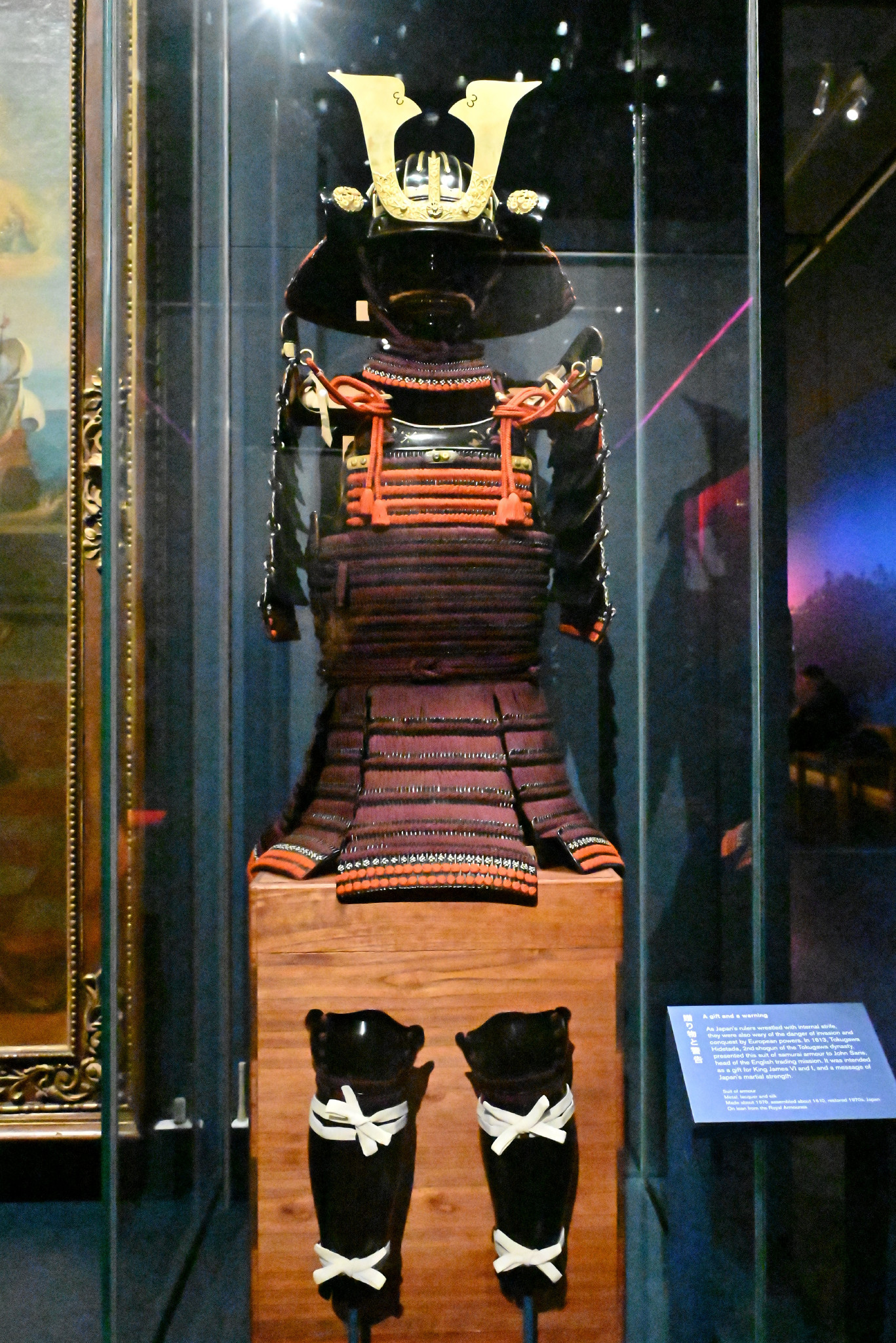 ロンドンの大英博物館で「サムライ」展が開催されている。同館所蔵品のほか、国内外から集めた約280点を展示。写真は江戸幕府2代将軍徳川秀忠がイングランド国王ジェームズ1世に贈った甲冑(かっちゅう)=6日