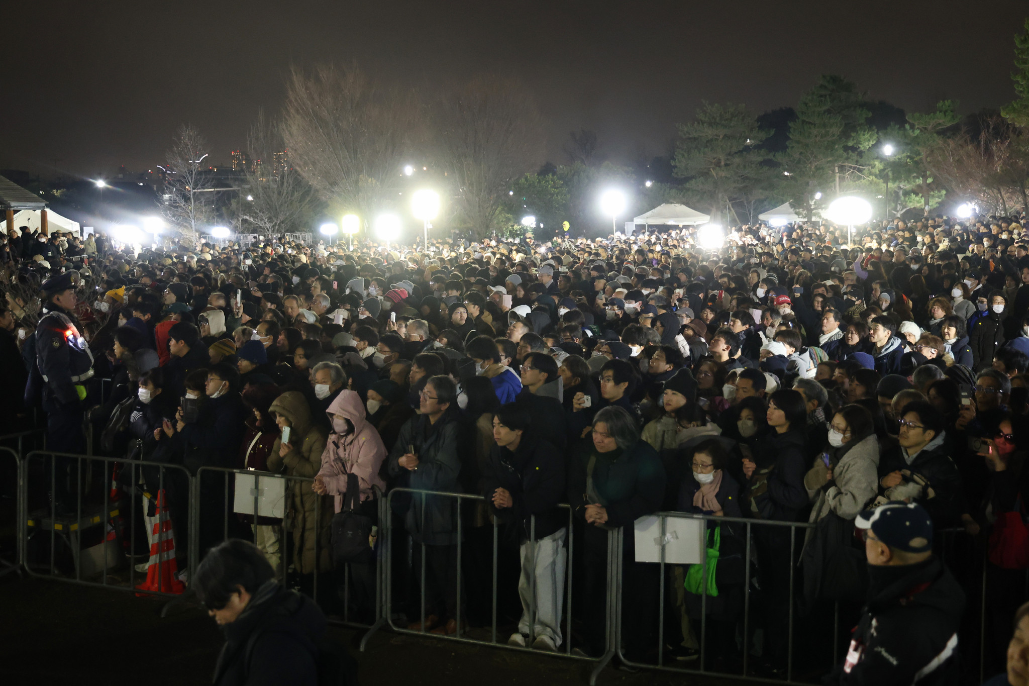 高市政権に対する審判の場となる第51回衆院選は8日、投開票される。写真は衆院選の「最後の訴え」に耳を傾ける有権者ら=7日夜、東京都世田谷区
