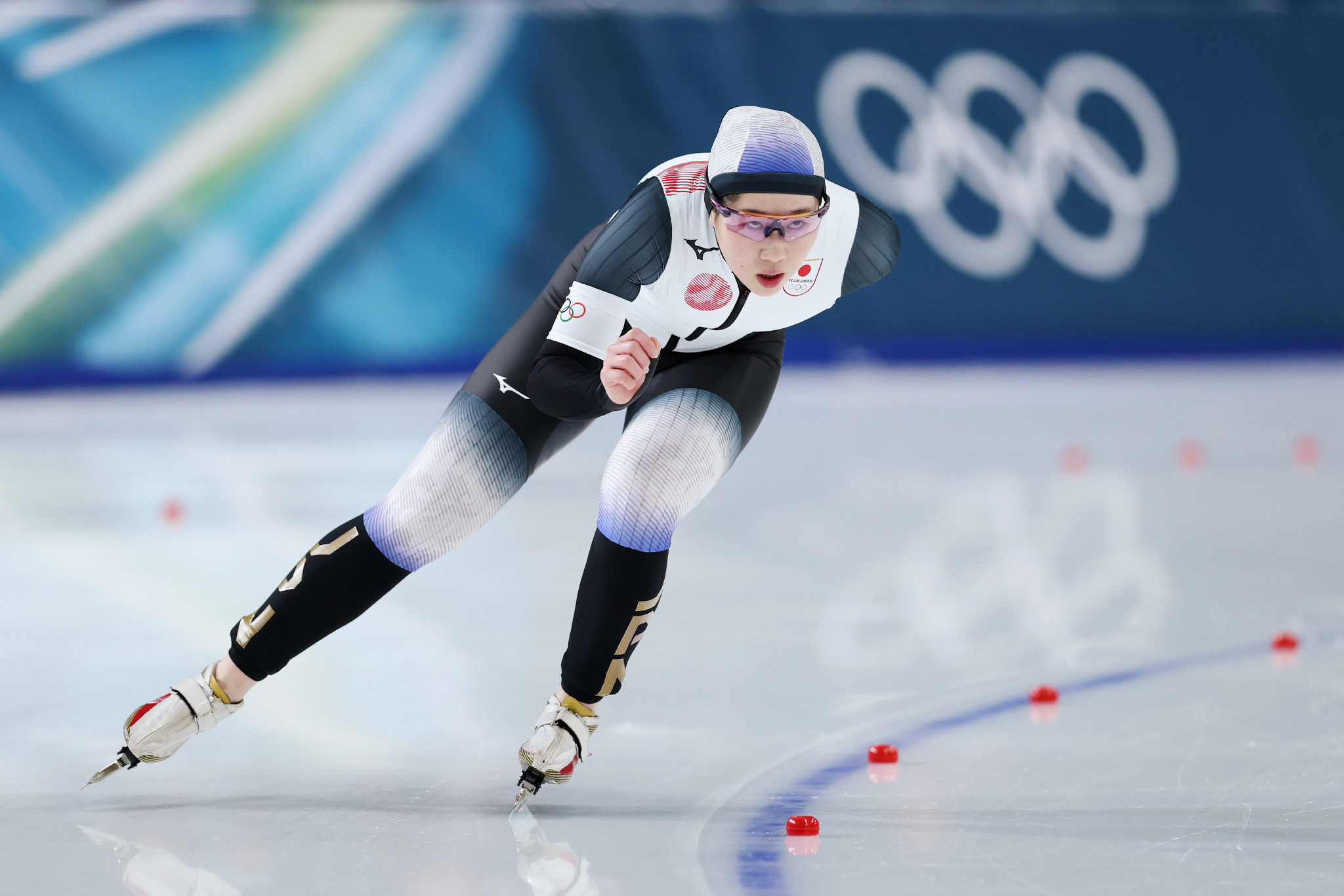 スピードスケート女子3000メートルで滑走する堀川桃香=7日、ミラノ郊外