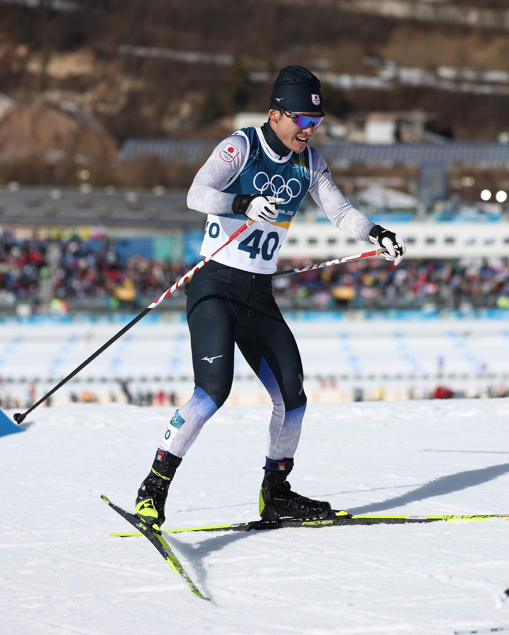 ノルディックスキー距離・男子20キロ複合で力走する広瀬崚=8日、テーゼロ
