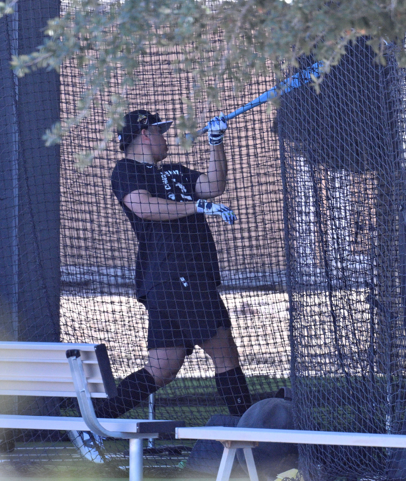ケージで打撃練習するホワイトソックスの村上=8日、米アリゾナ州グレンデール