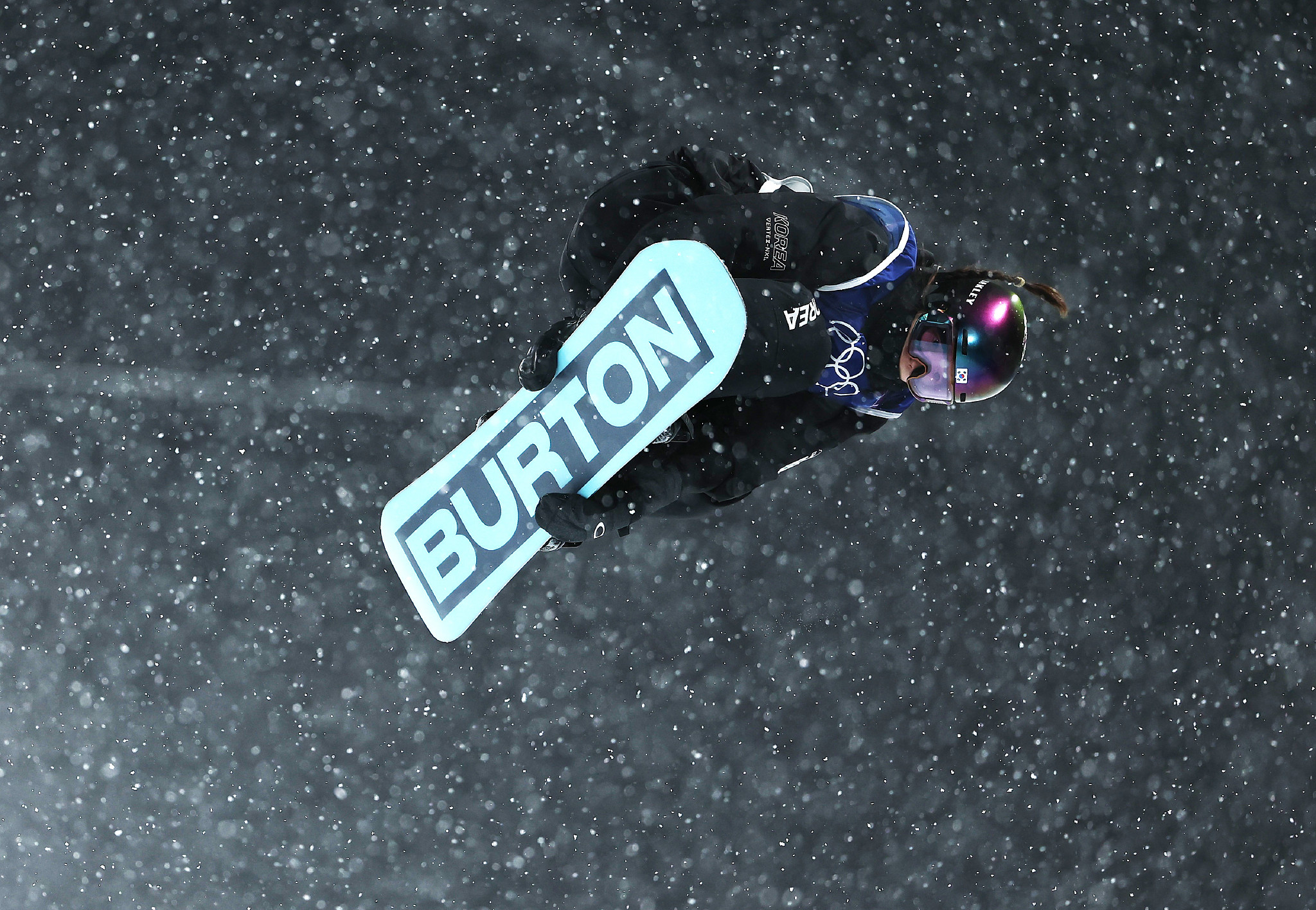 スノーボード女子ハーフパイプ決勝3回目、チェ・ガオンのエア=12日、リビーニョ