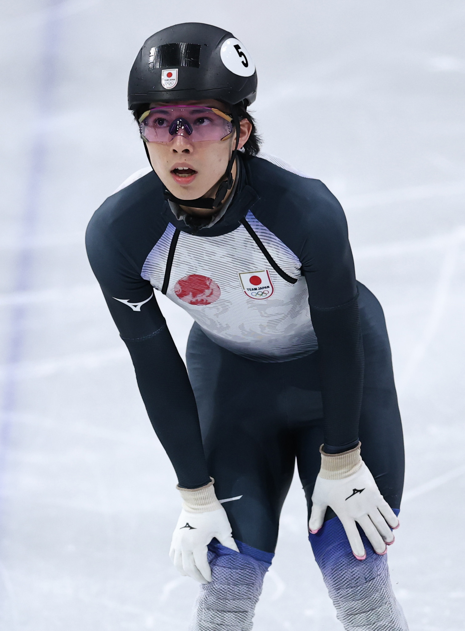 スピードスケート・ショートトラック男子500メートル予選、滑走を終えた宮田将吾=16日、ミラノ郊外