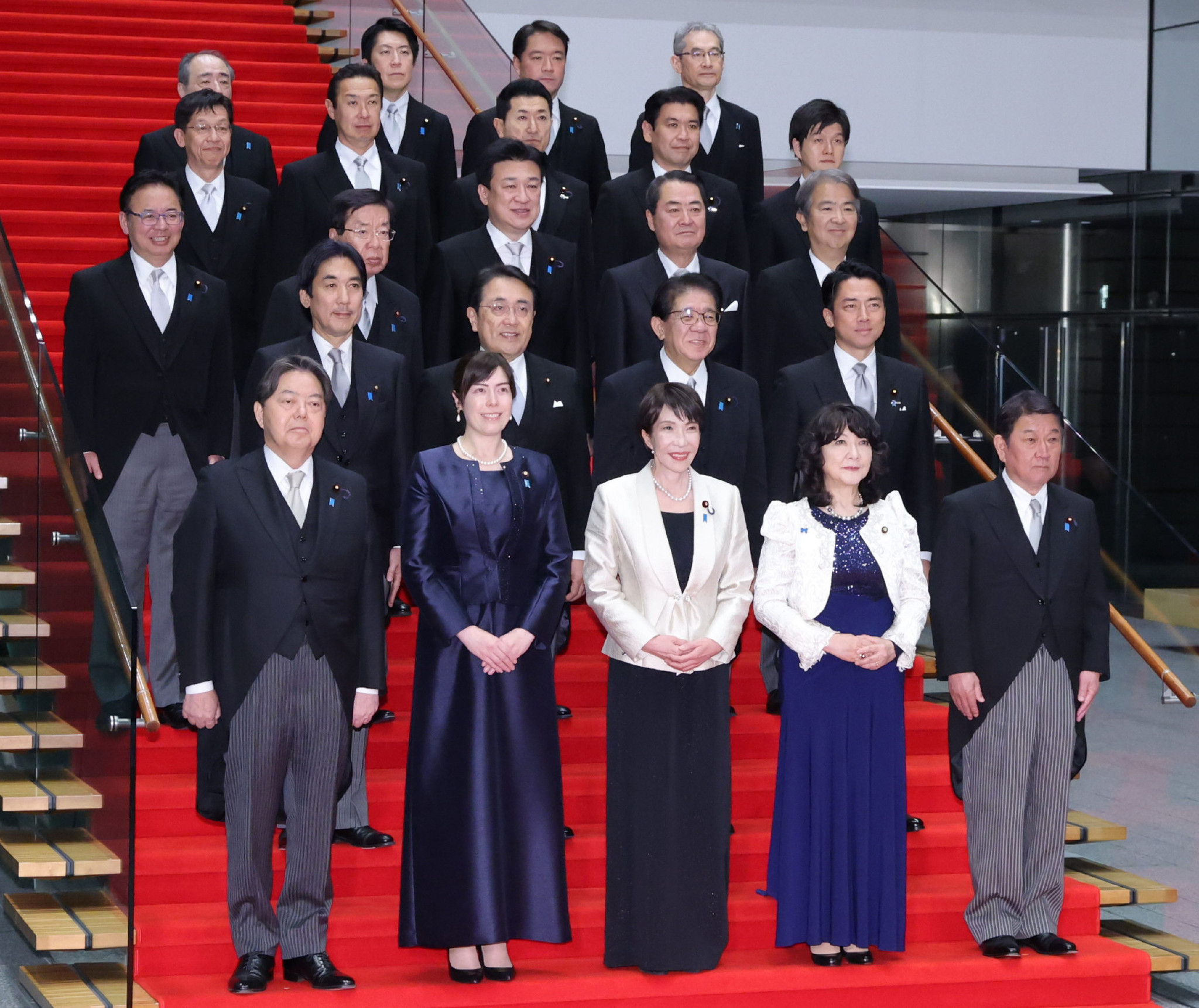 第2次高市内閣が19日、本格始動する。高市早苗首相(前列中央)は午前9時すぎに首相官邸入り。18日の閣僚人事に続き、第1次内閣の副大臣・政務官54人も再任する方向で調整を進める=18日撮影、首相官邸