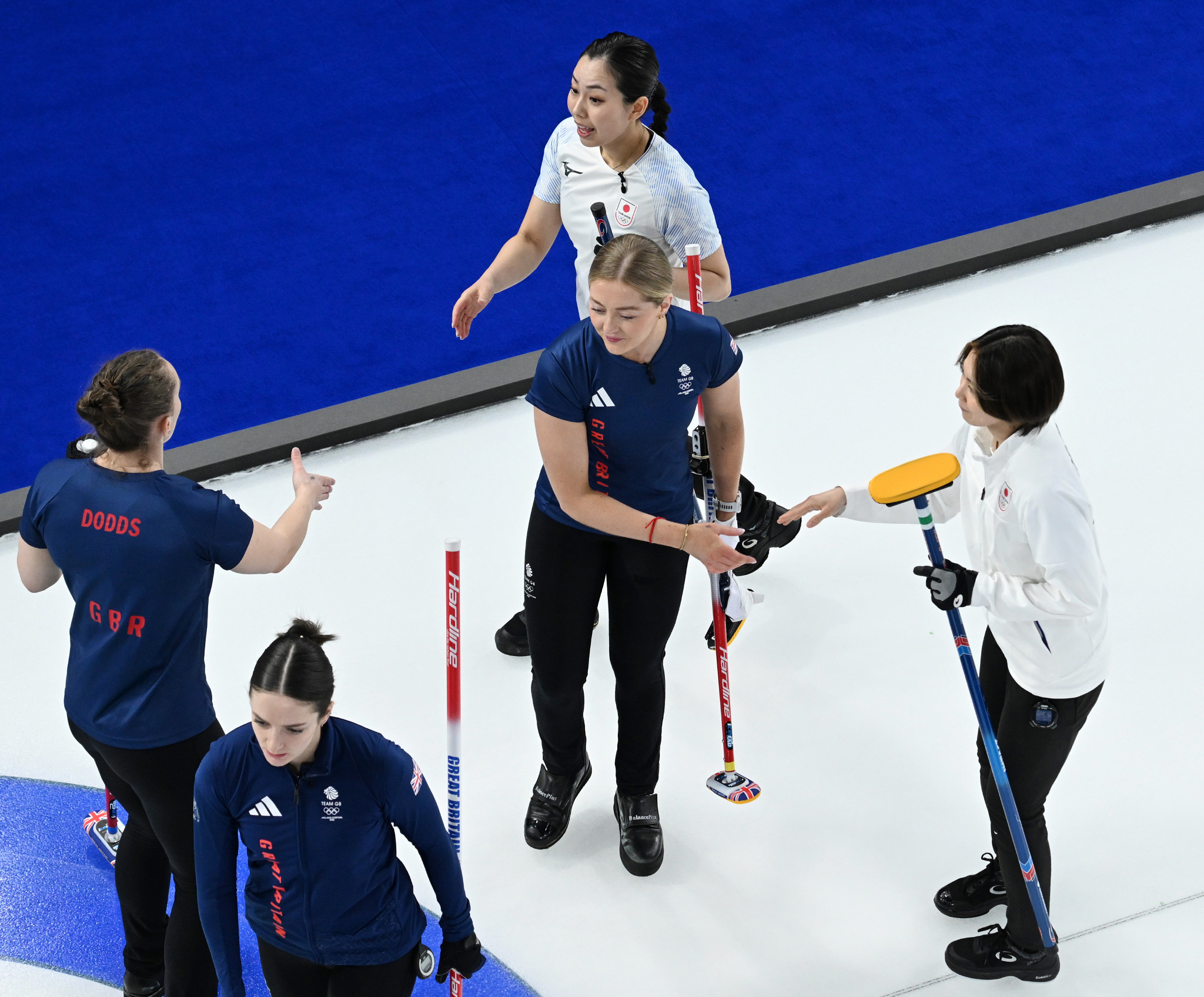 カーリングは18日、女子の1次リーグが行われ、既に敗退が決まっているフォルティウスの日本(写真)は英国に3―9で敗れ、通算1勝7敗となった=コルティナダンペッツォ