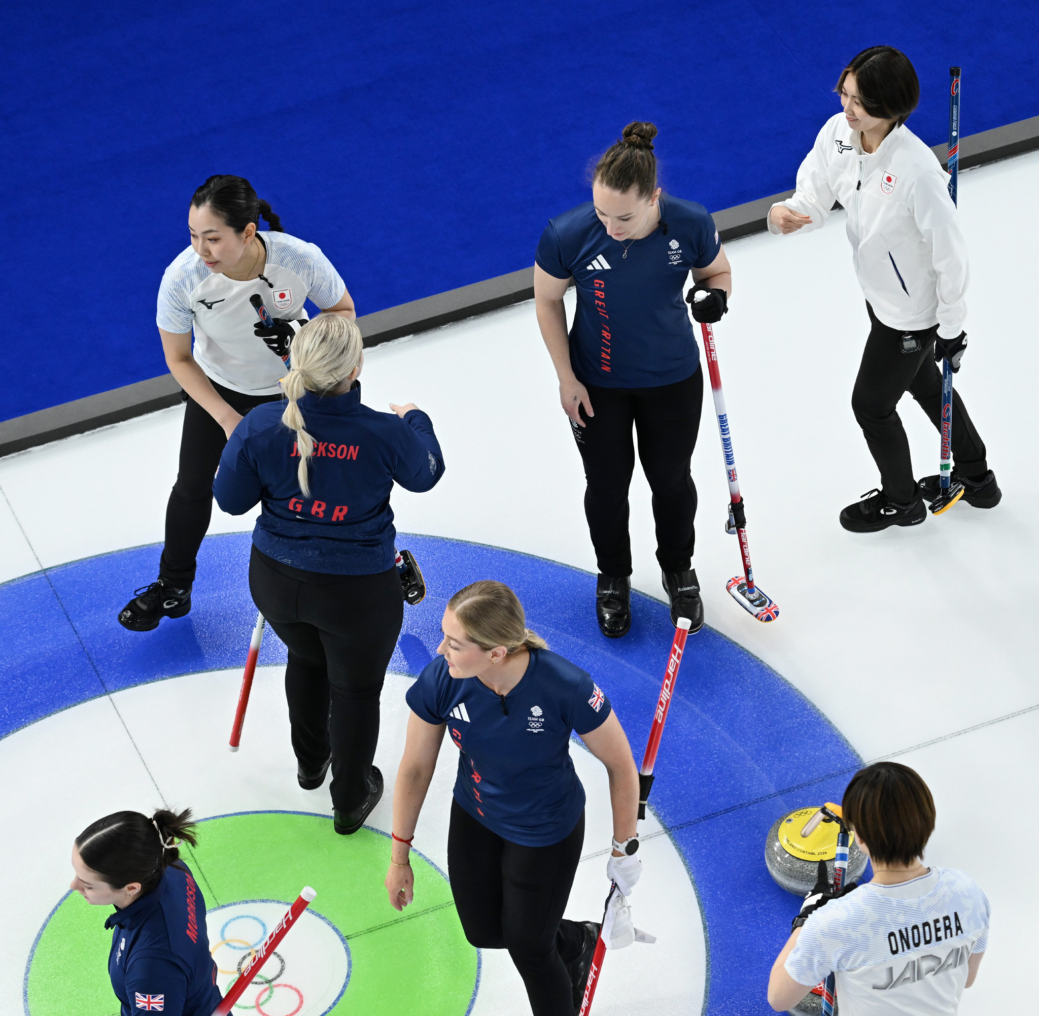 カーリング女子1次リーグ、英国に敗れた日本=18日、コルティナダンペッツォ