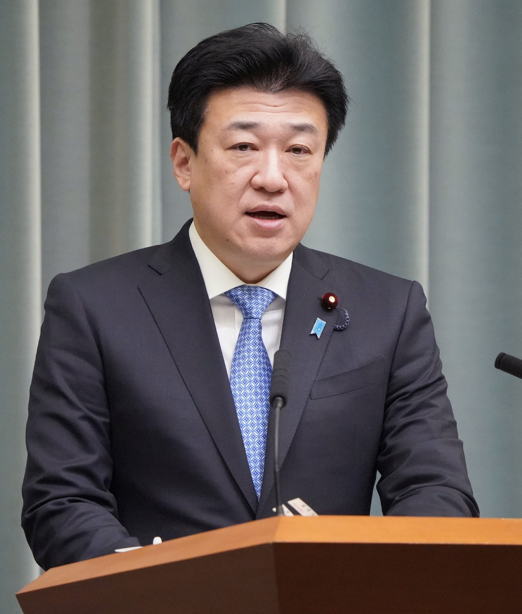 記者会見する木原稔官房長官=19日午前、首相官邸
